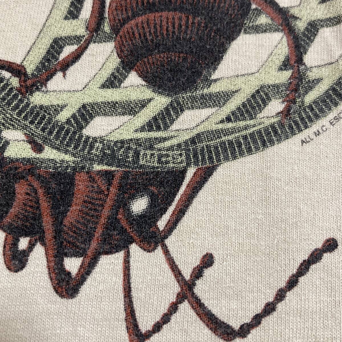 レア カラー 00s M.C. Escher 蟻 騙し絵 Tシャツ ベージュ