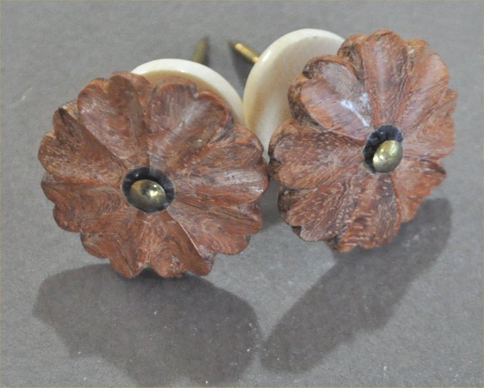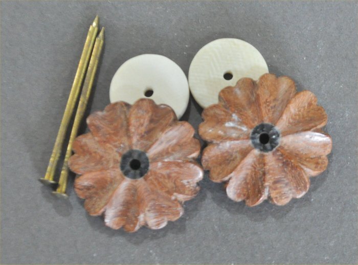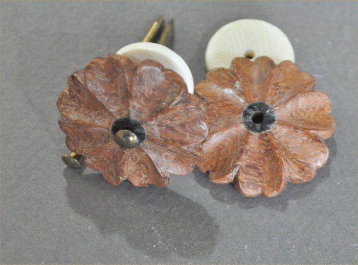 ナンタケットバスケット用の花梨の大きなコスモスノブサイズは29mm径厚み7mmマンモス牙ワッシャー17mm径厚み3mm磨き仕上げ綺麗な模様もコスモスノブです。