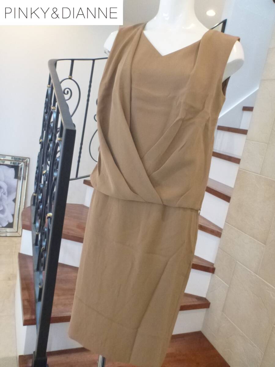 超美品 Pinky&Dianne ピンキー&ダイアン ★茶 キャメルブラウン 上下セットアップ  ノースリーブ 38 40 M相当