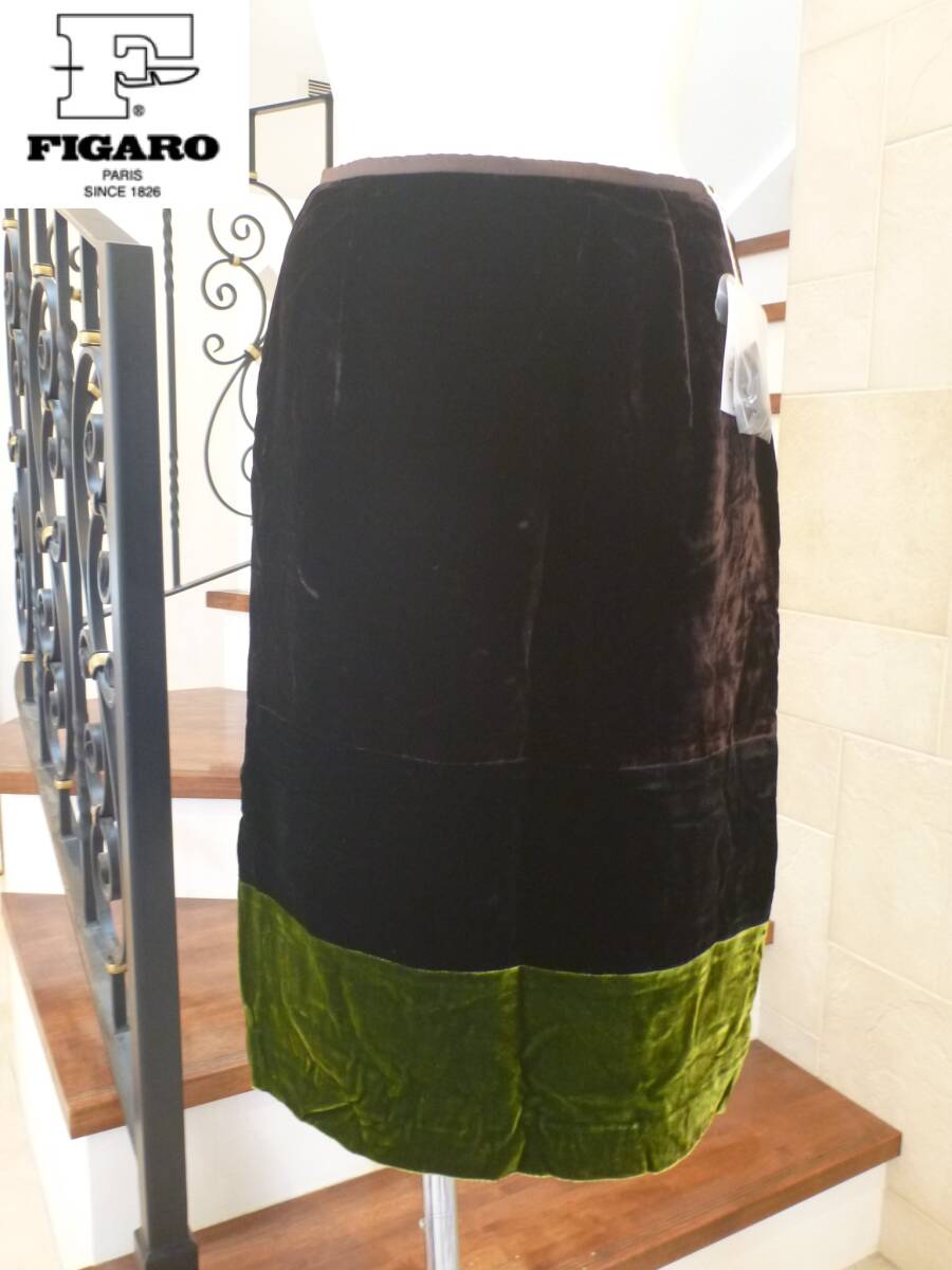新品 FIGARO(フィガロ)★ 茶×緑 ベロア スカート 38 S相当