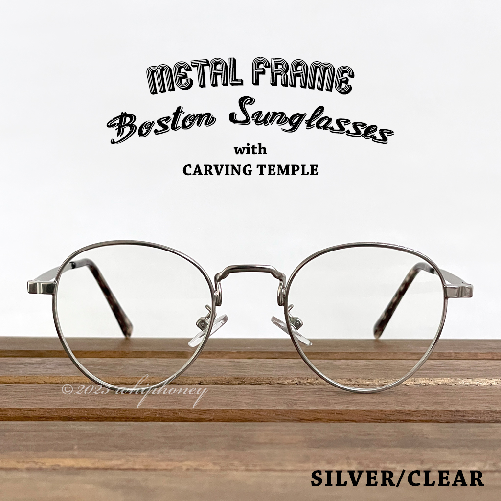 コンパクトなサイズ感がレトロ メタル ボストンUV伊達メガネ シルバー クリアレンズ サングラス メンズ レディース