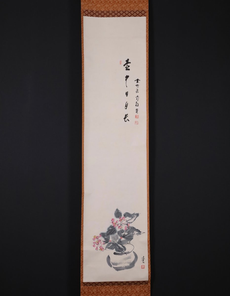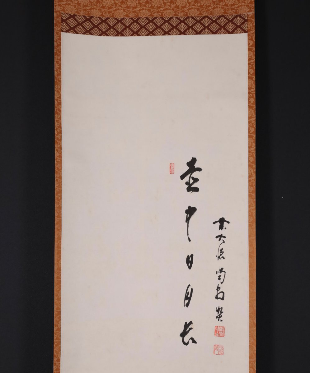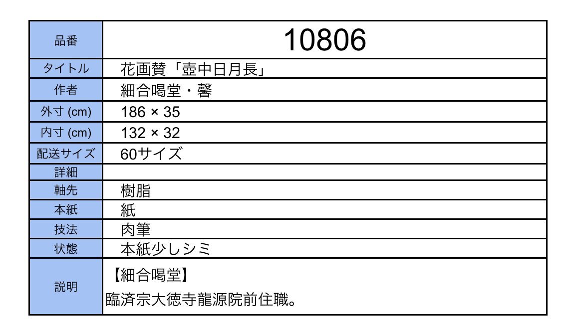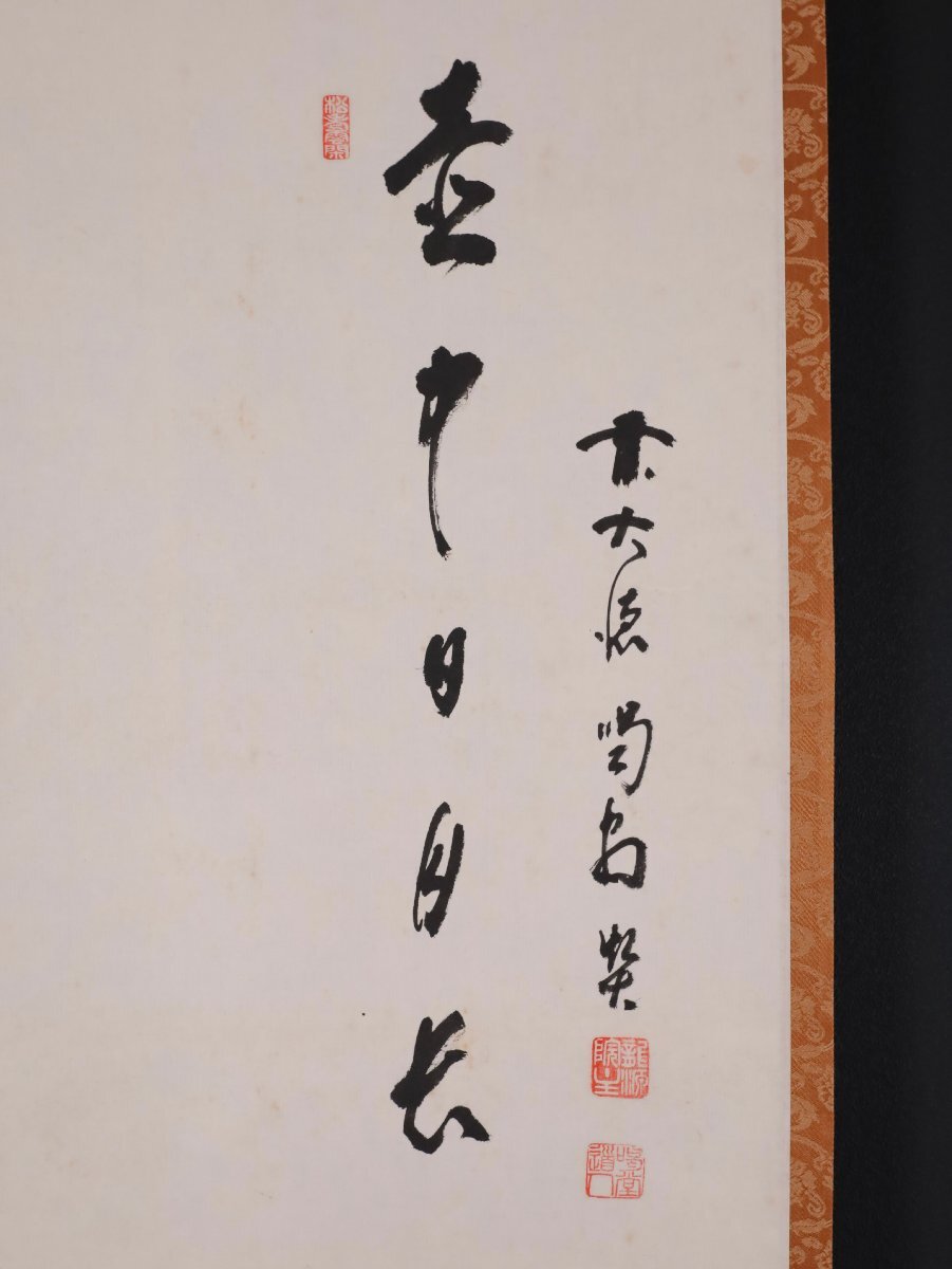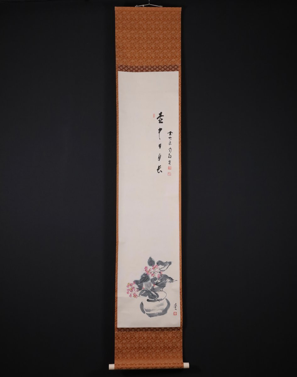 【模写】吉】10806 細合喝堂・馨 花画賛「壺中日月長」 臨済宗 大徳寺 龍源院前住職 仏教 茶掛け 茶道具 書 禅語 掛軸 掛け軸 骨董品