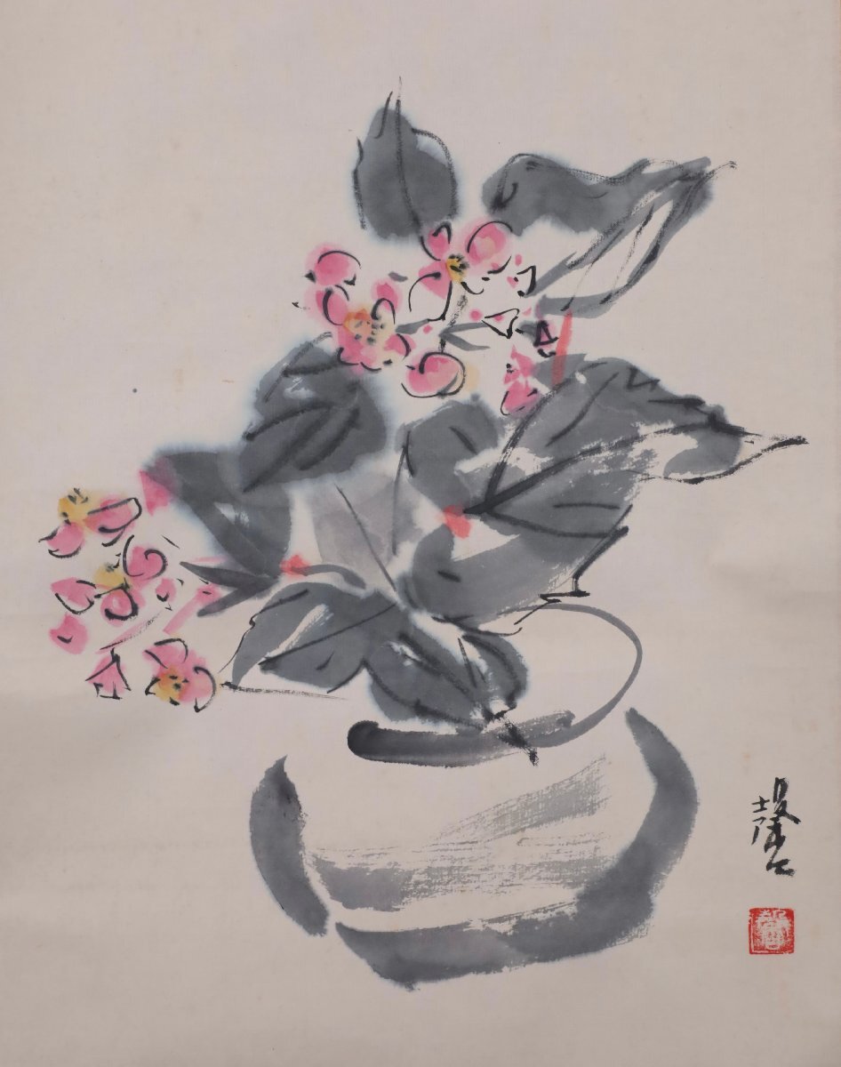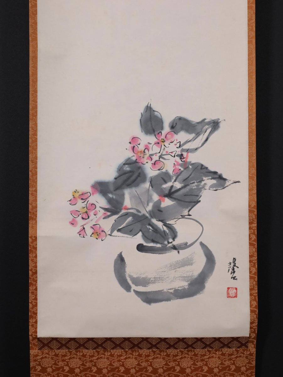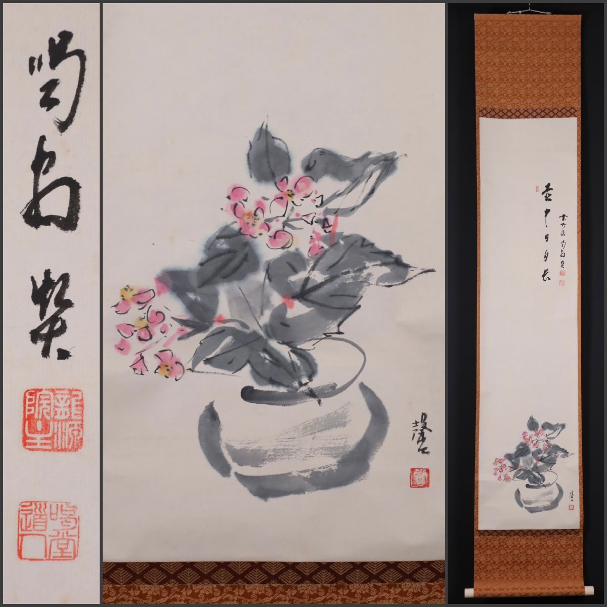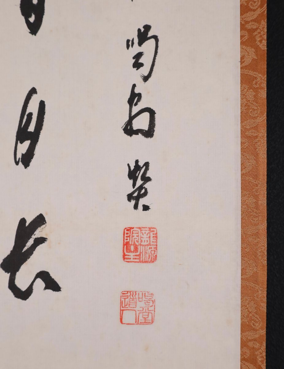 【模写】吉】10806 細合喝堂・馨 花画賛「壺中日月長」 臨済宗 大徳寺 龍源院前住職 仏教 茶掛け 茶道具 書 禅語 掛軸 掛け軸 骨董品