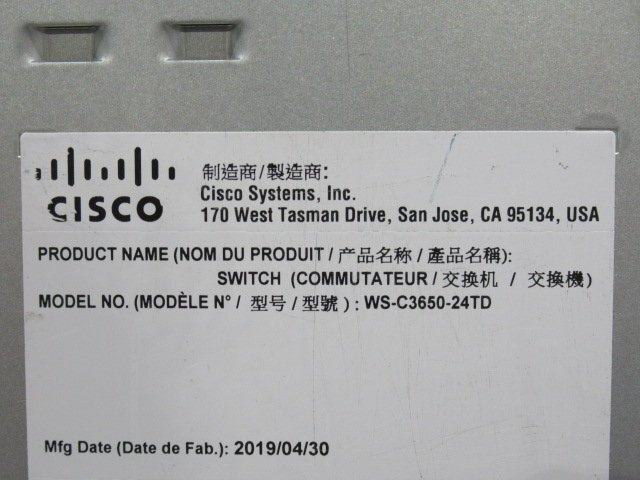 ◇ WS-C3650-24TD × 1 Cisco Catalyst 3650-24 2×10G | ||||