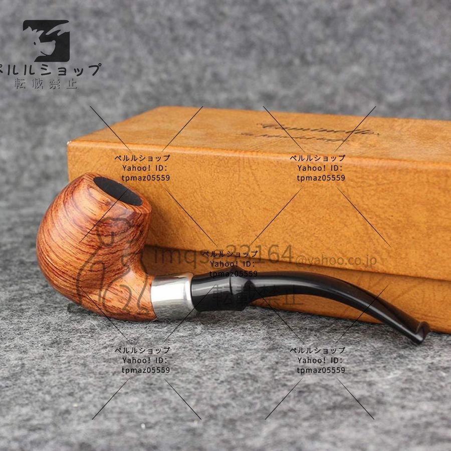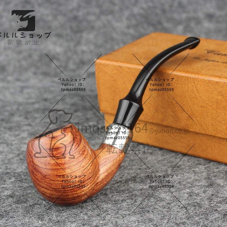 たばこパイプ 木製 、ローズウッド パイプ木製 無垢材パイプ 曲がったパイプ手作り9mmフィルター付きタバコ