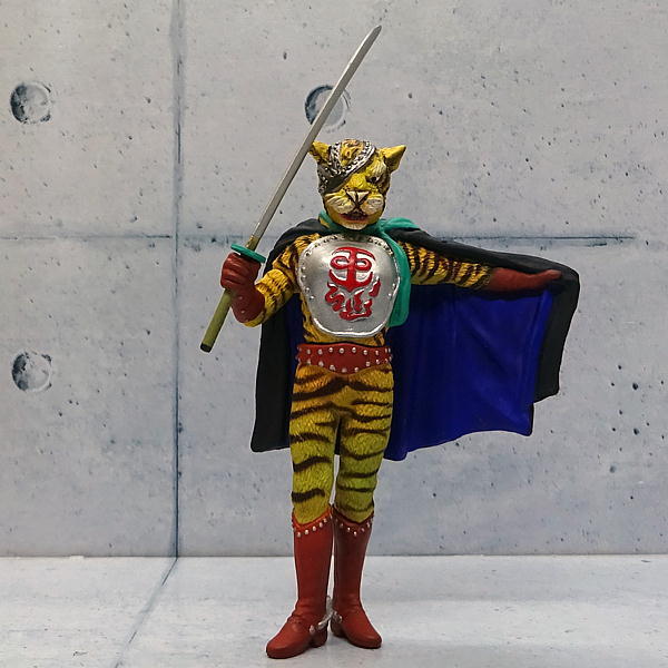 □コナミの食玩「超人ヒーロー伝説」の「怪傑ライオン丸」のタイガージョーです。12センチくらいの大きさです。 |