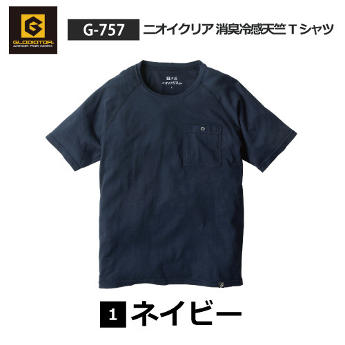 コーコス GLADIATOR Tシャツ 半袖 【 G-757 】ニオイクリア 消臭冷感天竺Tシャツ ■SSサイズ■ネイビー色 ≪ネコポス発送≫