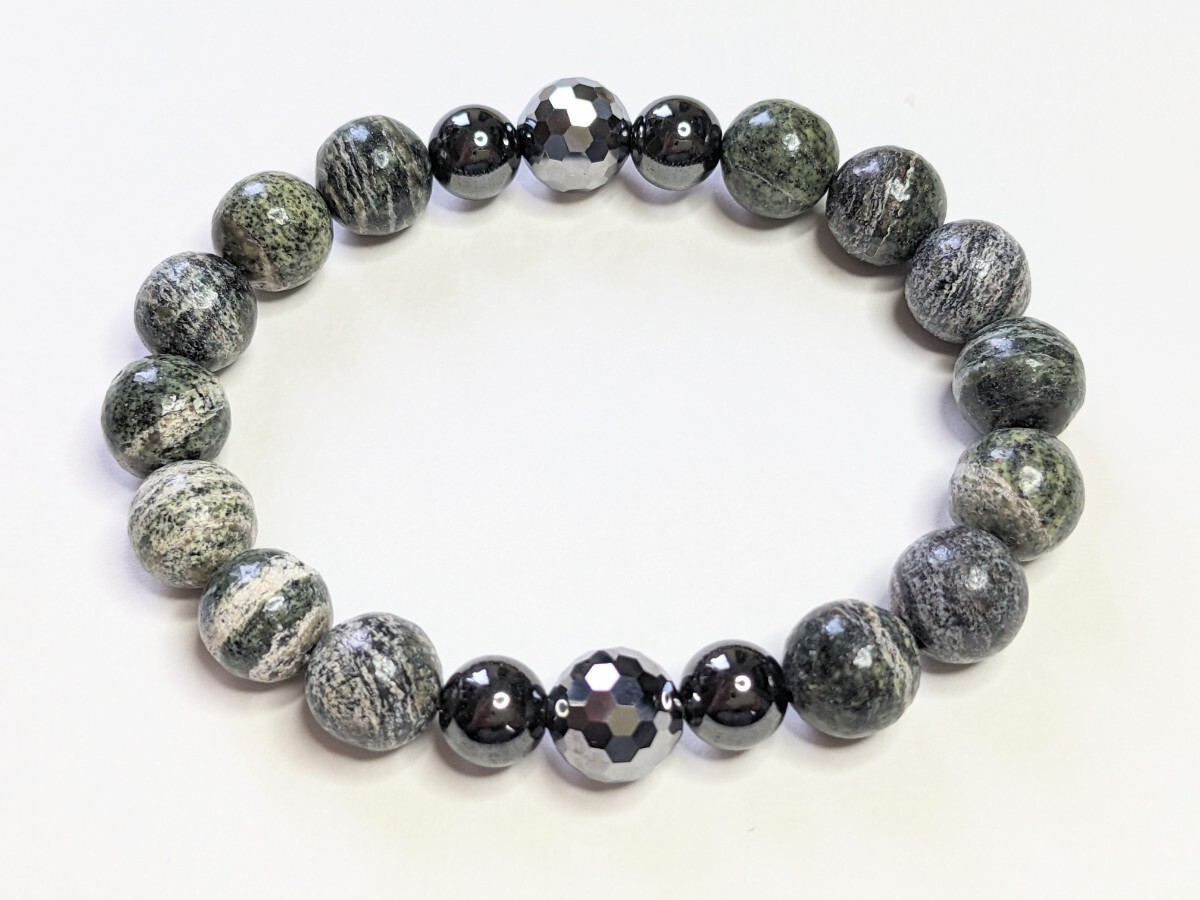テラヘルツと磁気ヘマタイトと薬王石を使用したストレッチ・ブレスレットです。
