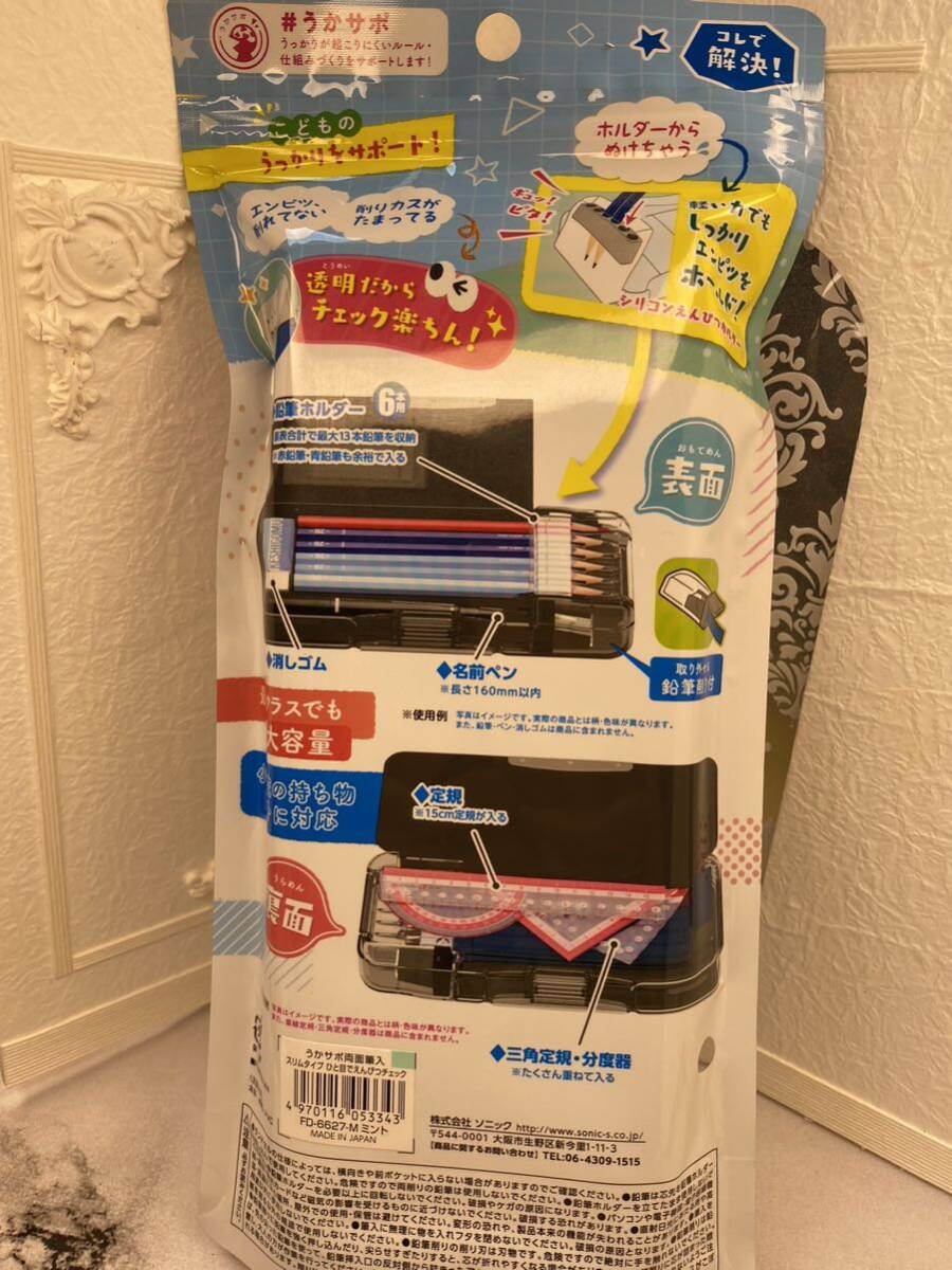 ソニック 筆箱 うかサポ 両面筆入 スリムタイプ ひと目でえんぴつチェック FD-6627-M ミント
