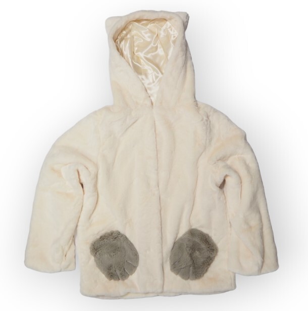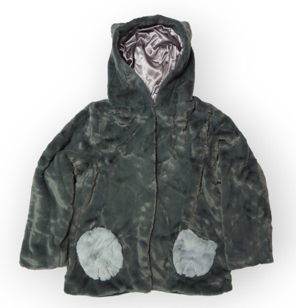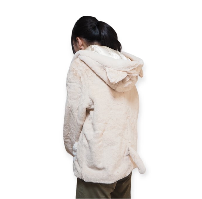 表の生地が、ラグジュアリーな長毛猫をイメージした、さらさらで、ふんわりしたフェイクファーのガウン、パーカージャケットです。