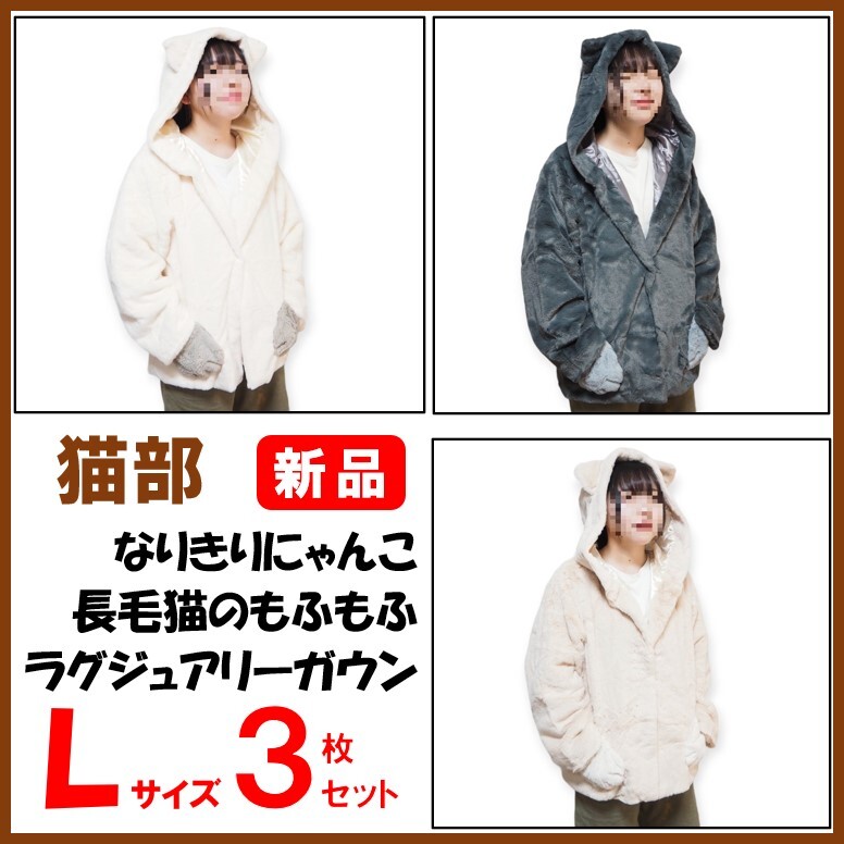 フェリシモ猫部★新品3色セット★定価22,722円 なりきりにゃんこ 長毛猫のもふもふラグジュアリーガウン (L) 猫部 猫雑貨 猫グッズ