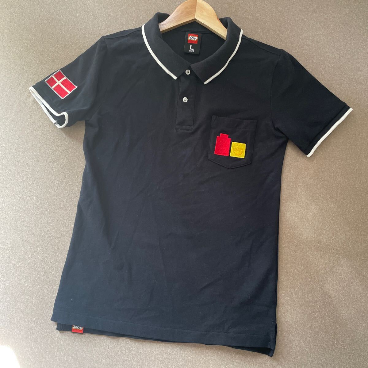 ♪LEGO*お洒落なレゴブロックの半袖ポロシャツ*黒 ブラック*小さめL*デンマーク♪