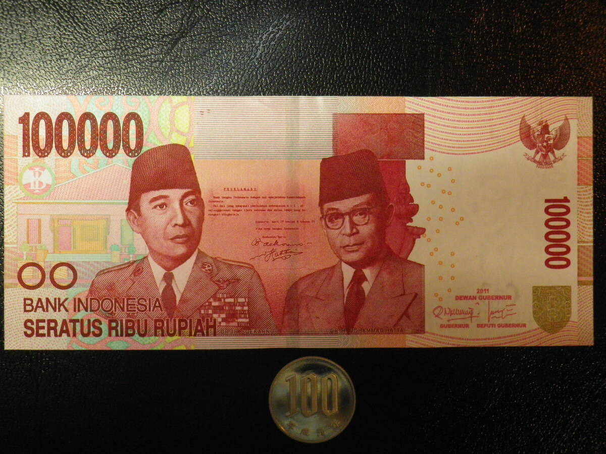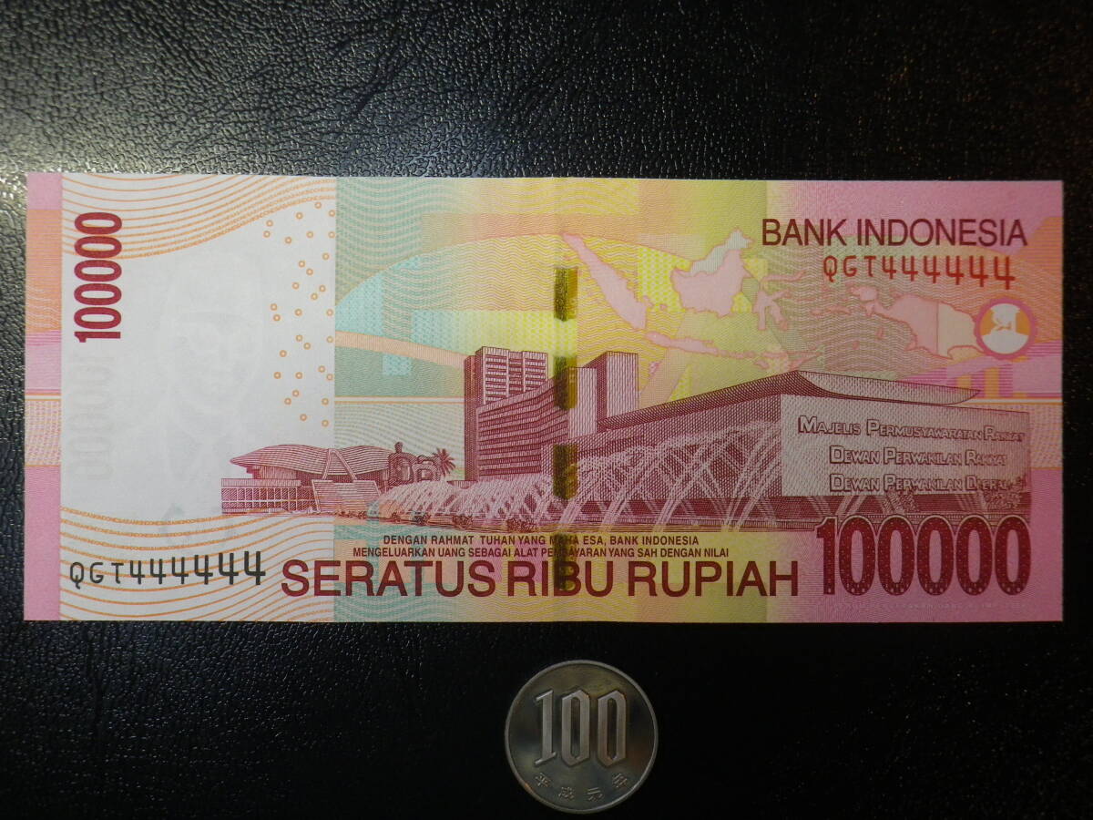 珍番 インドネシア 2011年 100000Rupiah QGT 444444 未使用