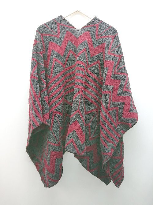 ◇ jenevieve ジュヌヴィエーヴ 柄もの 生地薄手 冬物 ポンチョ 表記なし レッド系 レディース E