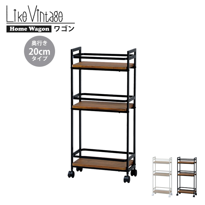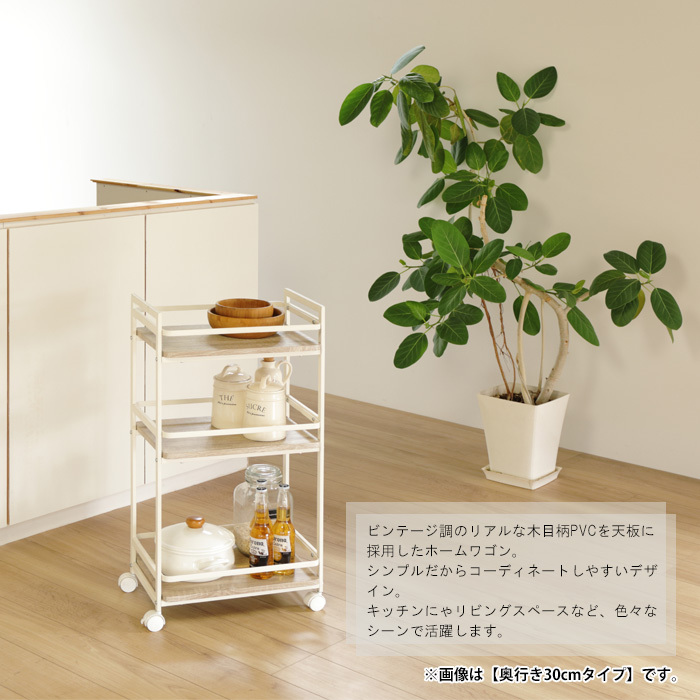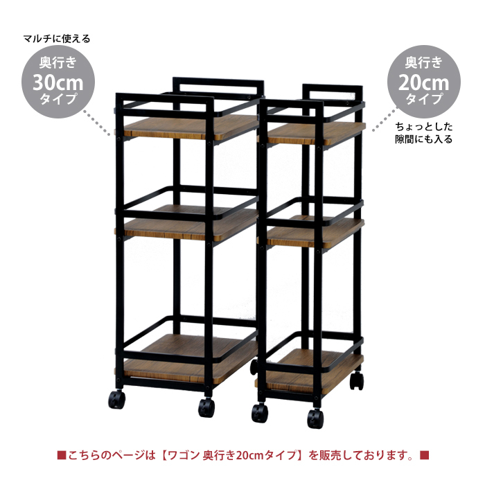 | 木目をリアルに再現したPVCを使用した天板にシンプルなデザインのスチールフレームを組み合わせたワゴン。 ちょっとした隙間にも対応できるスリム仕様。 |