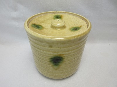 | 商品説明 | 茶道具 加藤唐三郎作 黄瀬戸 水指です。 <商品の状態> 茶人宅保管品の古いお品でございますが綺麗な印象です。 未使用だと思われます。お品はとても綺麗な印象です。 共箱に微細なスレ等ございますが、目立ったダメージは無く良好な状態です。 お品の詳細な状態については写真をご覧頂き、ご納得頂いた上でのご入札をお願いします。 [サイズ] 高さ:約15.5 cm 直径:約 15.3 cm タイトルの『検)』以降の単語は、商品に関連する検索用単語です。 ご入札頂く前に、必ず「ご入札頂く前の注意事項」の説明をお読み下さい。 説明しきれない多少の傷・汚れや経年に伴う変色などがあることをご理解のうえ、ご入札・ご落札お願い致します。 共箱・段ボール箱・紙箱等付随物にはに保管時における時代感や書き込み、スレ・汚れ・キズ・シミ等の有る場合がございます。 同梱発送にも対応しておりますので、お気軽にお申し出下さいませ。 <梱包に関して> 商品の紛失を防ぐ為、小さな商品の場合でも、ある程度の大きさの梱包でお届けする場合がありますのでご了承下さい。 ※梱包材は環境保護や廃棄物削減を目指し、又多様な商品形状に対応できるように配送に使用するダンボール箱はリサイクル(再利用)を使用し、緩衝材等には古新聞紙等を利用しています。 <応対可能時間について> 取引ナビ・質問への応対可能時間は「9:00~17:00」 となりますが繁忙時等は対応できない場合がございます。 お品の状態等気になる事項は「ご質問」にてご確認の上「入札・落札」をお願いします。 <ご返品について> 正当な理由によるご返品のお申し出につきましてはご対応させていただいております。 (例:商品説明・写真と、実際の商品に著しい差違がある場合等のみ対応させていただきます) | ||