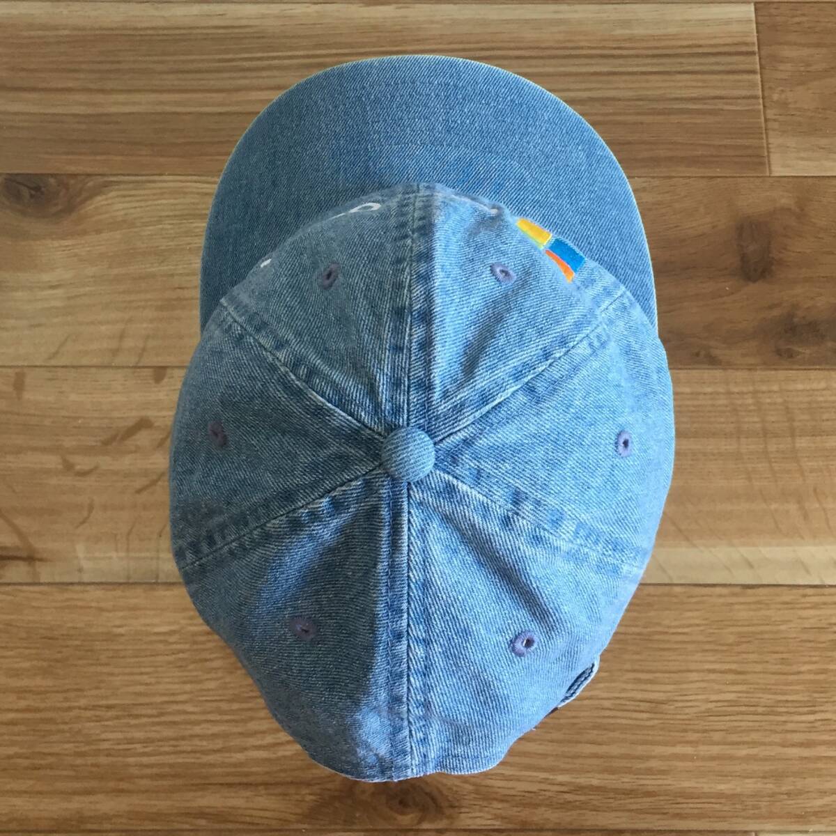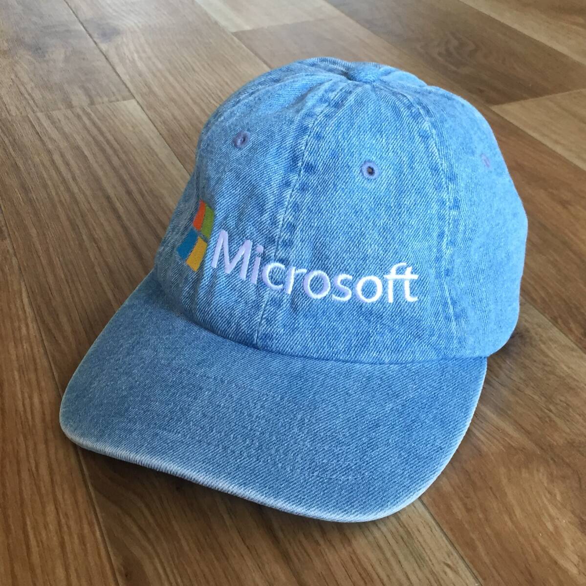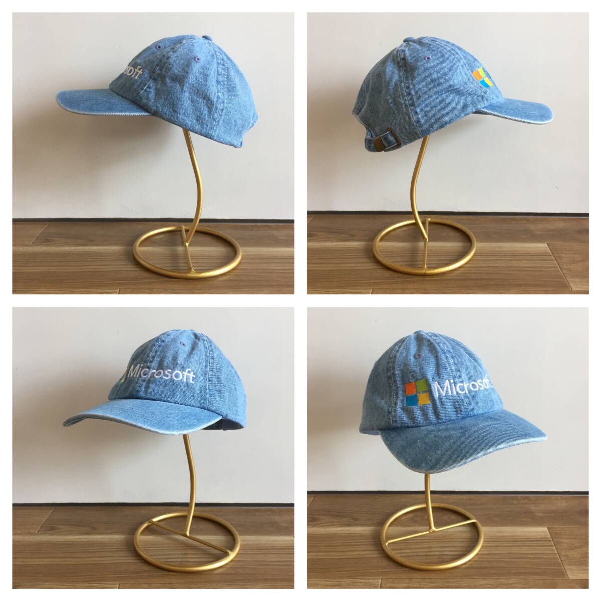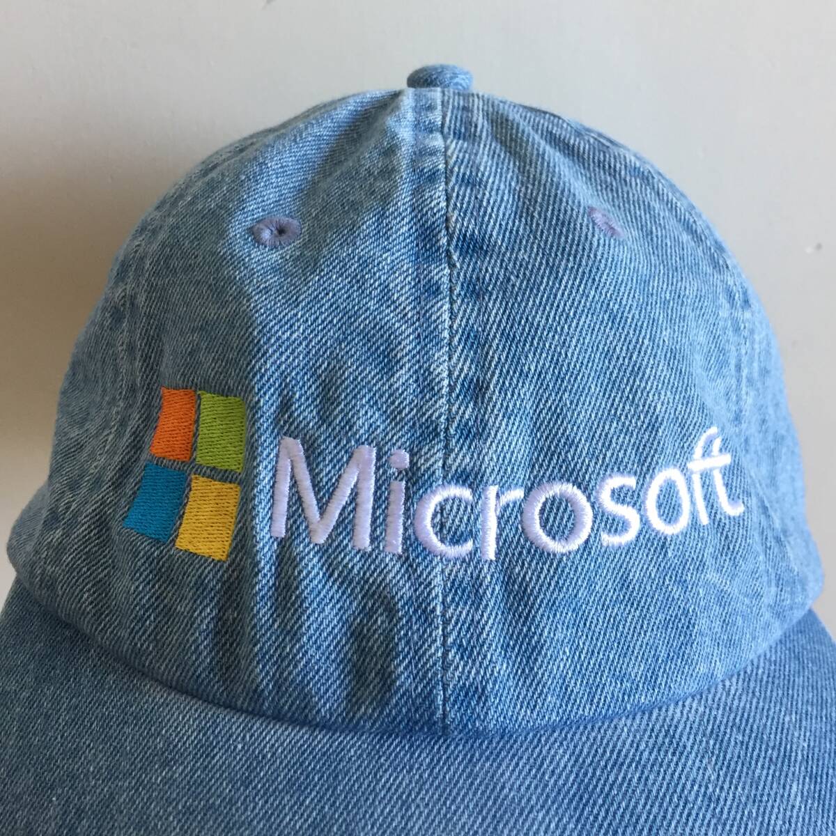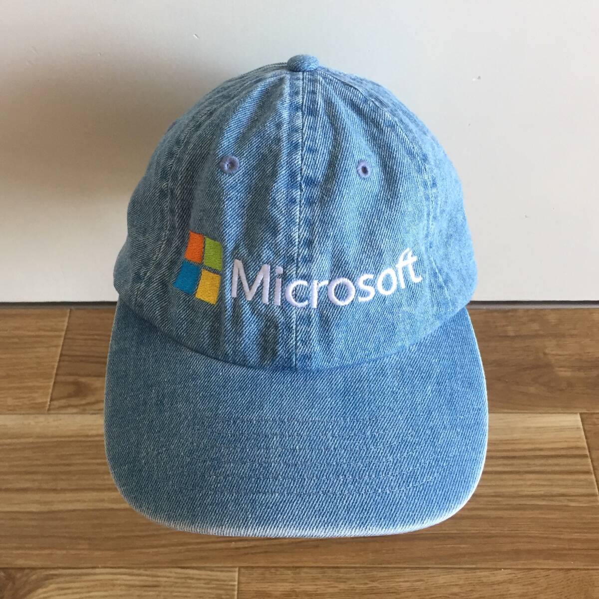Microsoft マイクロソフト 帽子 キャップ 6パネル ロゴ 刺繍 企業 デニム ライトブルー フリーサイズ サイズ調節可能 古着 美品 希少