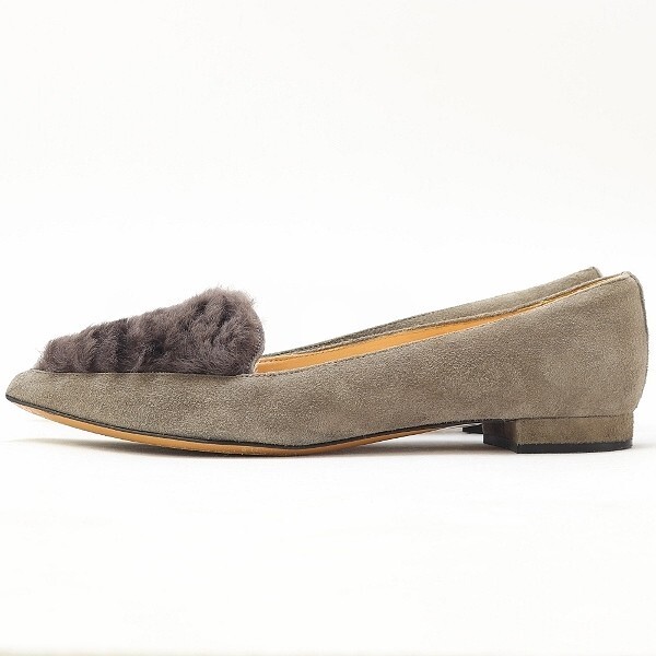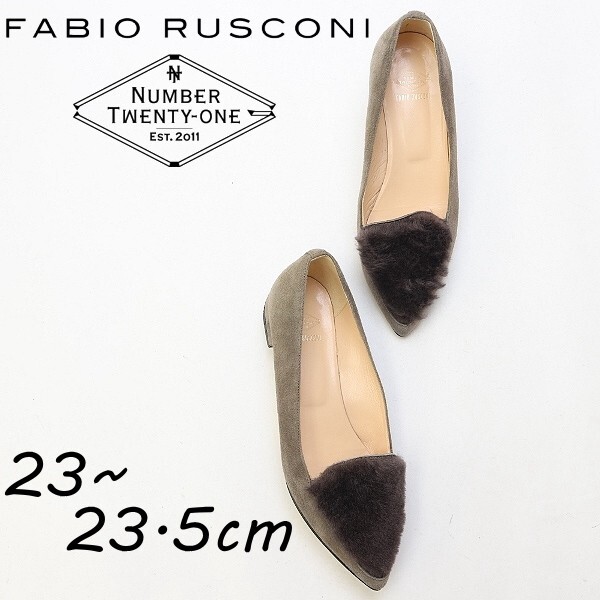 ◆FABIO RUSCONI ファビオルスコーニ×NUMBER TWENTY-ONE スエード×ファー ポインテッドトゥ パンプス グレージュ×ダークブラウン 36 1/2 | |