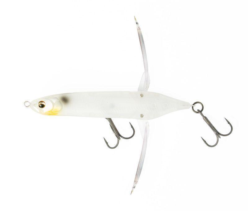 強化プラチック製の透明ウィングを装備したそのシルエットはまさに小鮎、ワカサギなどの小型ベイトフィッシュそのもの。
