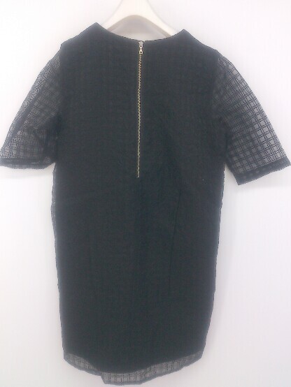 ◇ NINE ナイン チェック シアースリーブ 五分袖 ミニ ワンピース サイズF ブラック レディース E