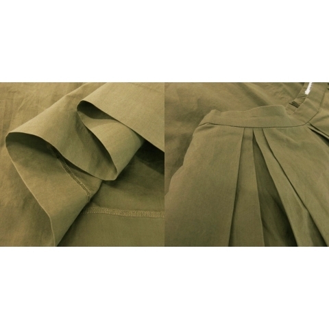 キャシャレル cacharel スカート フレア ミモレ ロング タック プリーツ コットン アースカラー 小さいサイズ 34 緑 カーキ /AH7 ☆