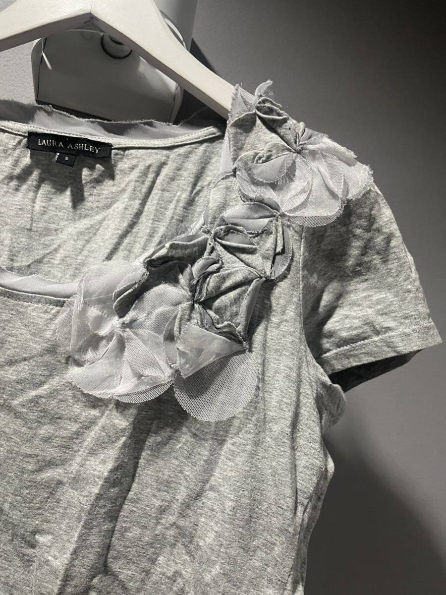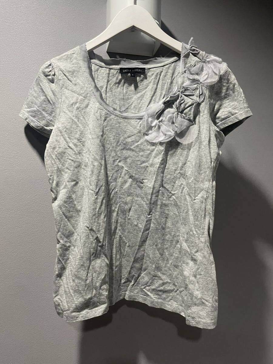 美品Laura Ashleyローラ アシュレイ半袖カットソートップスグレー花レディース