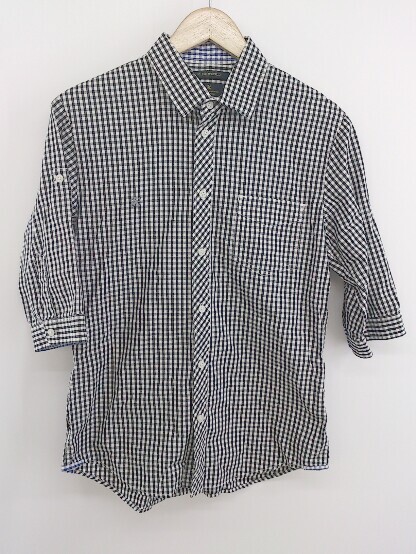 ◇ R.NEWBOLD アール ニューボールド ギンガムチェック 五分袖 シャツ サイズM ブラック ホワイト メンズ P