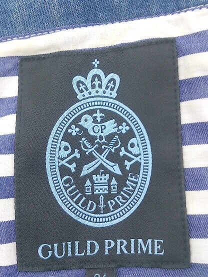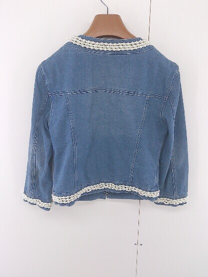 ◇ GUILD PRIME ギルドプライム パール ビジュー 七分袖 ノーカラー ジャケット サイズ34 ブルー系 レディース E