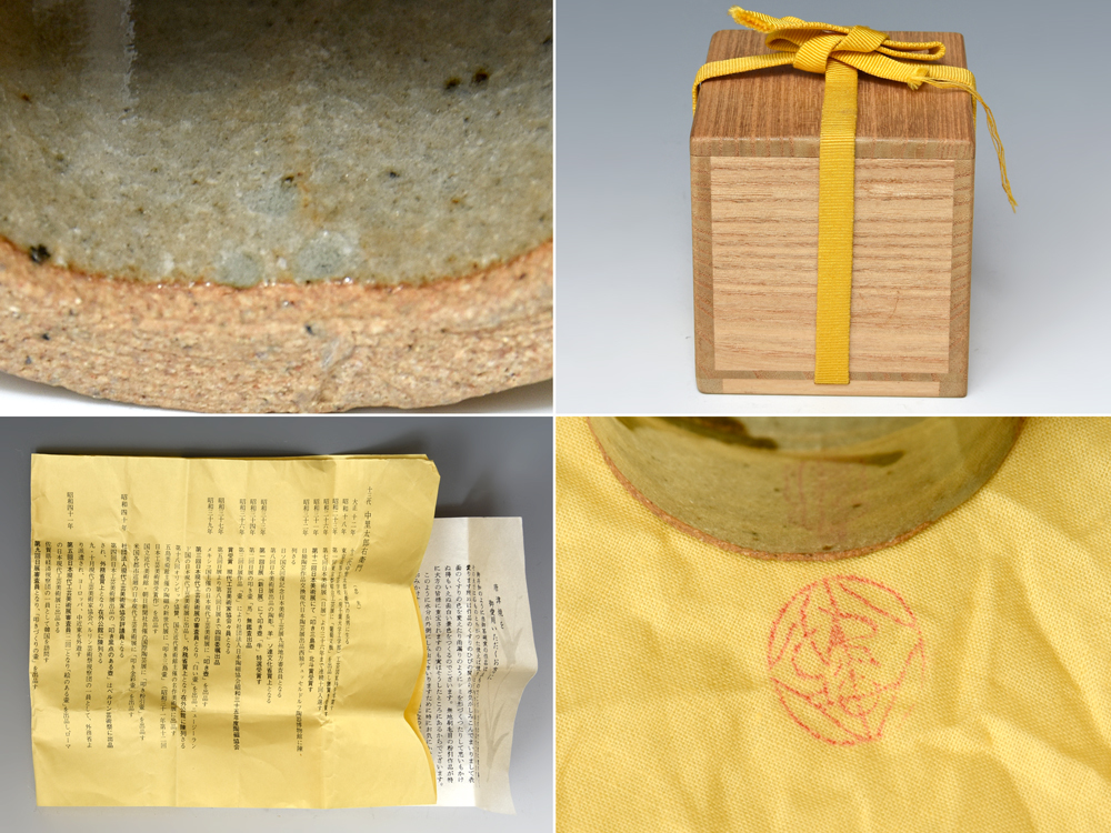 十三代 中里太郎右衛門(1923年 - 2009年) 1943年(昭和18年) 東京高等工芸学校(現千葉大学工学部)工芸図案科卒業 1951年(昭和26年)陶彫「牛」により日展初入選 1965年(昭和40年)現代工芸美術家協会視察団として欧州、中近東視察 1967年(昭和42年)日展会員となる 1969年(昭和44年)13代中里太郎右衛門襲名 1981年(昭和56年)「叩き唐津三島手付壺」により内閣総理大臣賞受賞 1984年(昭和59年)「叩き唐津手付瓶」により日本芸術院賞受賞 1985年(昭和60年)日展理事に就任 1992年(平成4年) 佐賀県重要無形文化財認定 1995年(平成7年) 唐津市政功労賞受賞 同年紺綬褒章受章 1997年(平成9年) 紺綬褒章再受章 2000年(平成12年)日本工匠会(日工会)会長就任 2002年(平成14年)長男・忠寛に名跡を譲り、得度して逢庵と号する 2007年(平成19年)12月、日本芸術院会員となる 2008年(平成20年)旭日中綬章を受ける 2009年(平成21年)3月死去 |