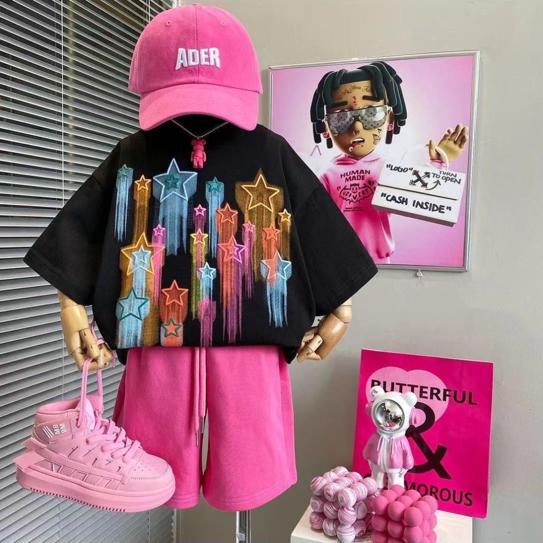 160㎝ 子供服 伸縮性 上下2点セット 男女兼用 流星 星柄 ブラック