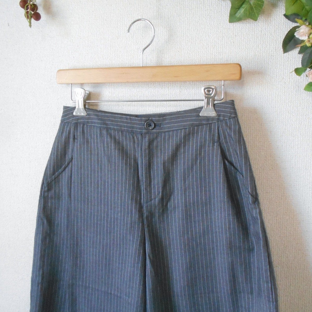 【ポイント】アーノルドパーマーのガウチョパンツ(クロップドパンツ?)になります。お色はグレーベースでストライプが全体に入っています。ヒップのポケット部分に傘のマークが付いています。