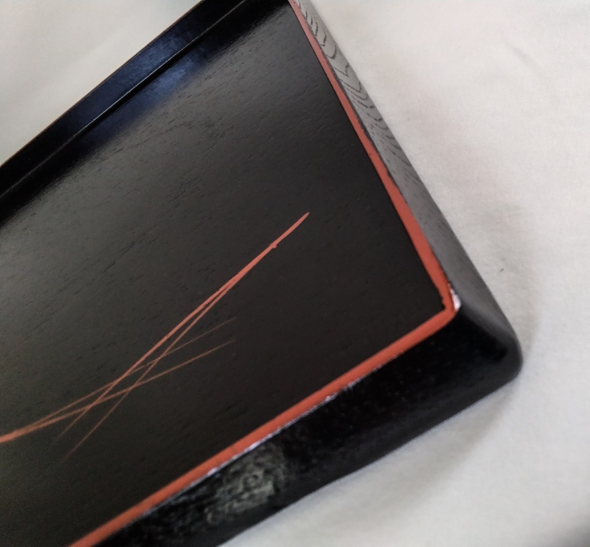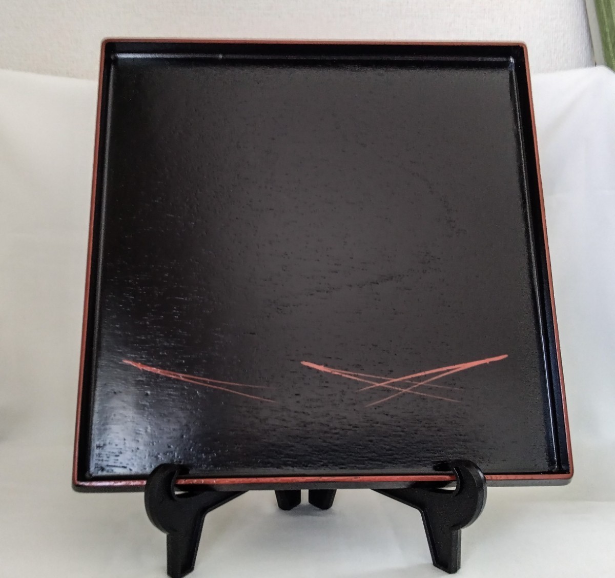 [未使用]漆器 塗物 黒塗 角盆 松 銘々盆 お膳★02V-709の出品になります。