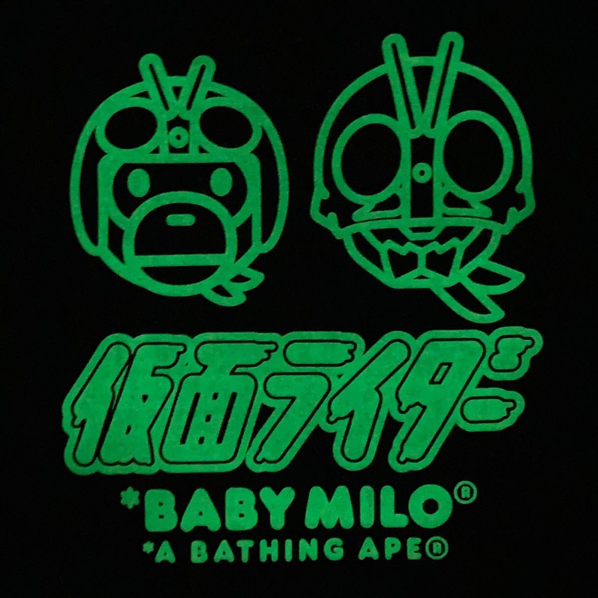 a bathing ape × 仮面ライダー ★蓄光★ マイロ Tシャツ ブラック Lサイズ です★