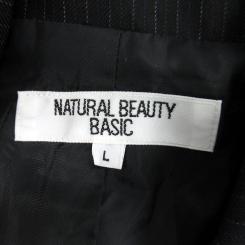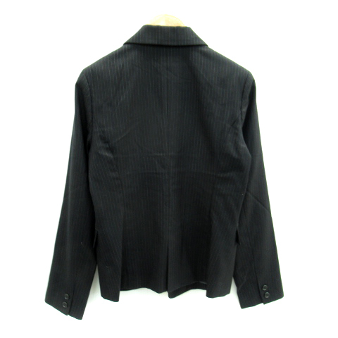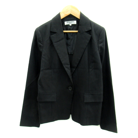 ナチュラルビューティーベーシック テーラードジャケット シングルボタン ピンストライプ柄 ウール シルク混 L ブラック /SY30 レディース