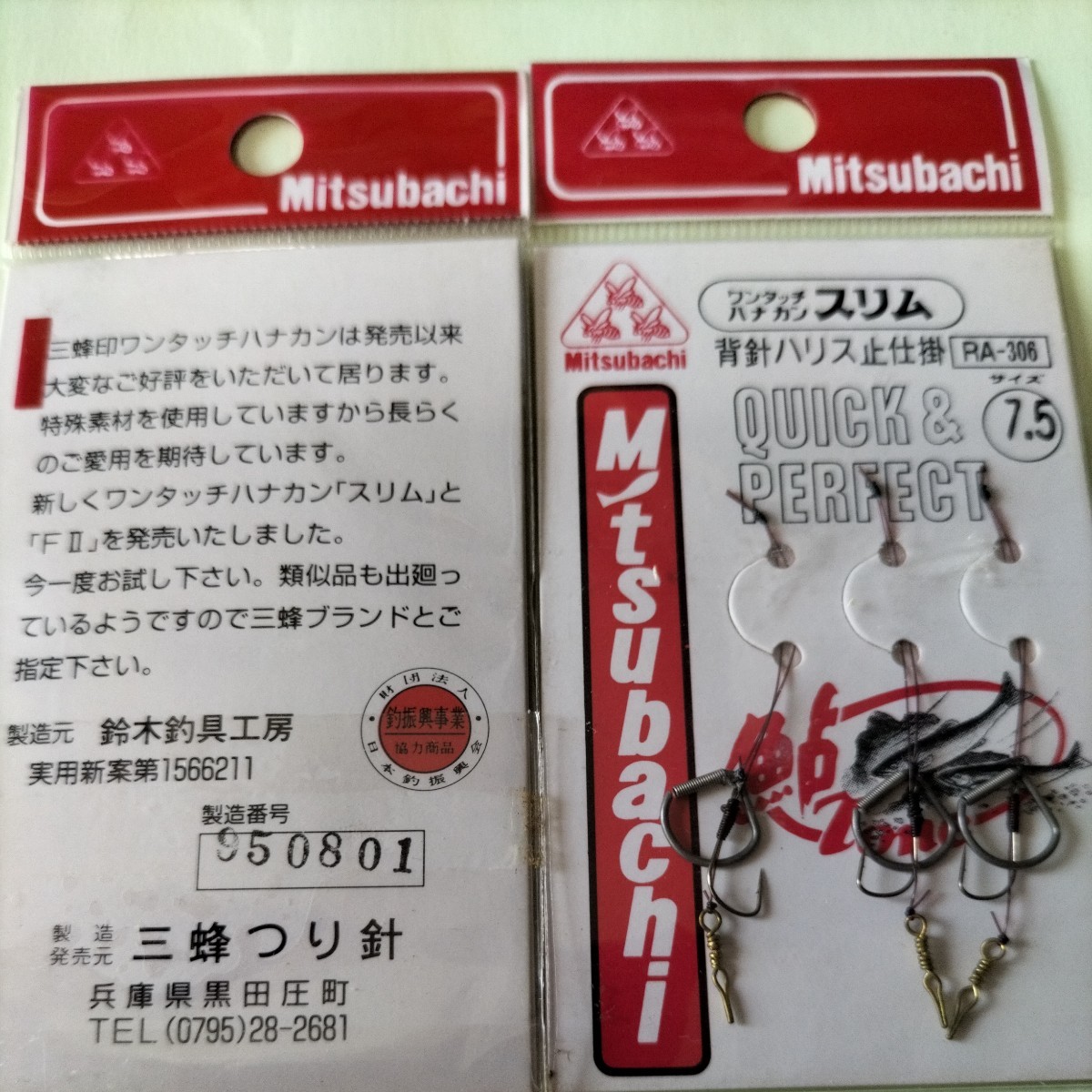 ミツバチ ワンタッチスリムハナカン仕掛 背張りハリス止仕掛size7.5号 3組入2枚セット在庫処分品お安くご提供します。