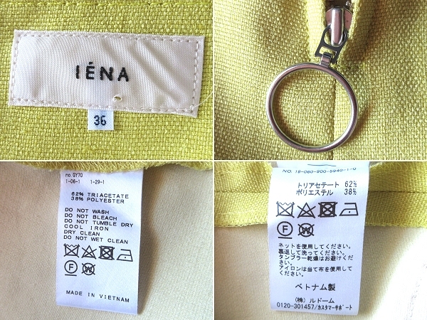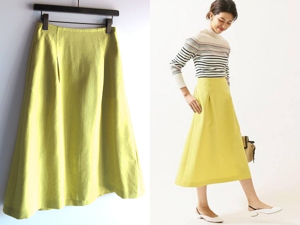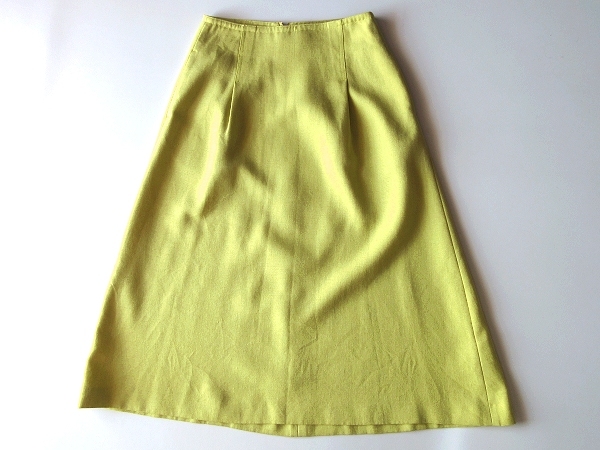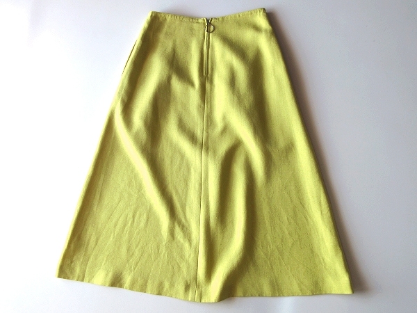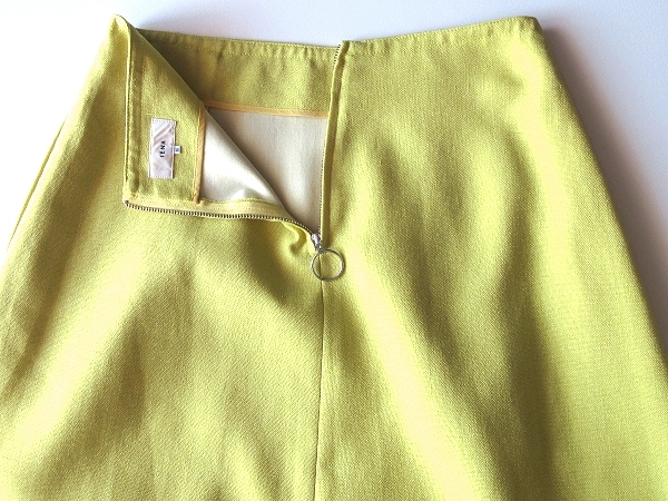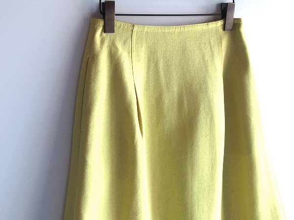 美品 IENA イエナ 2019SS リネンライク トリアセテート ポリ バックジップ TAボンディングタックトラペーズスカート 36 黄 定価17600円