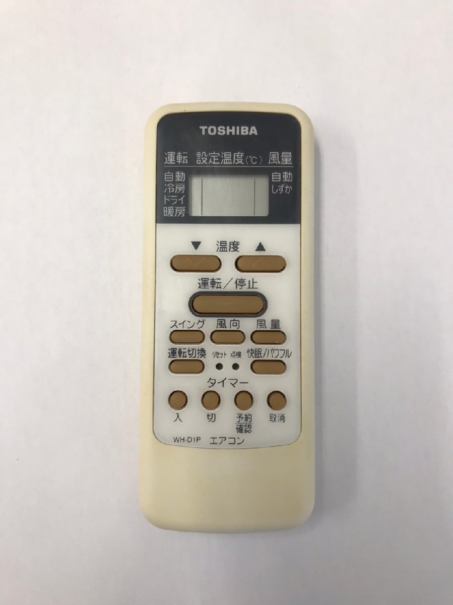 【TOSHIBA WH-D1P 電池付き】リモコンのみの販売です。赤外線チェック済です。 すぐお使いいただけるよう電池付き(単4乾電池2個付き)で発送いたします! 電池は接触しないように紙を挟んでおりますので、到着したら引き抜いてからご利用ください。 中古ですが比較的綺麗な商品です。1点1点専門スタッフが丁寧に検品、できる限りのクリーニングはしておりますが、若干の落としきれない汚れ、ヤケ、キズ、黄ばみ等の劣化はあるものとお考えください。 見た目に関して神経質な方は購入をお控えください。 電池や設定の問題を解決し、使用できるようになっています。 使用できない場合はまずストアにご相談をお願いします。 設定の問題、対応機種間違い、本体側の問題等、リモコンが不良でない場合は保証対象外です。対応機種についてのご質問はお答えできかねます。 各メーカーへお問い合わせいただくか、検索から各機種の取扱説明書をご確認ください。 中古リモコンは現品限りとなりますので、ご希望の商品がございましたらお早めにご購入ください。※他店でもこちらと同じ中古リモコンを販売しております。そのため他店でお客様より先に購入があった際は、大変申し訳ございませんがご購入いただいた商品はキャンセルとさせていただきます。あらかじめご承知ください。