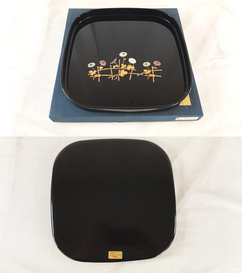 ナショナルの垣根菊 漆器 角盆です。共箱付になります。