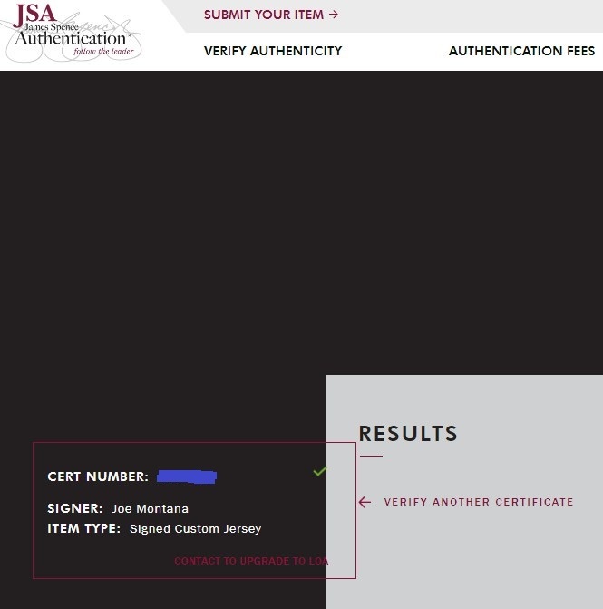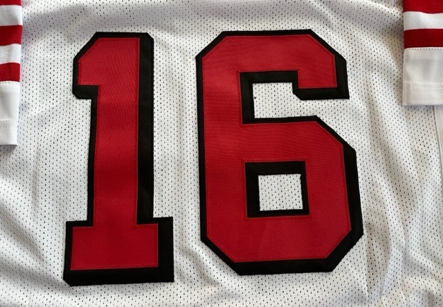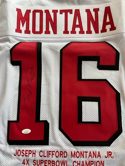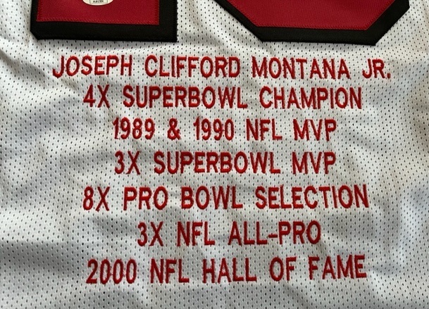 ジョー・モンタナ直筆サイン入りCARRIER STAT WHITE JERSEY