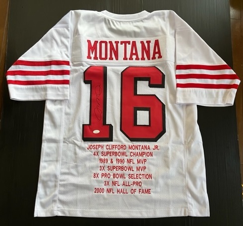 JOE MONTANA AUTOGRAPHED CUSTOM SAN FRANCISCO 49ERS WHITE STAT JERSEY