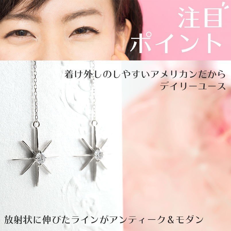 商品コード 200311100dpu 発送は3週間ほどです材質 プラチナ900 (品質を保証するpt900の刻印)宝石名 天然ダイヤモンド 0.06ct大きさ 全長 約 84ミリ(ロング角アズキ6cm)放射状に伸びたラインがアンティーク&モダンな雰囲気のアメリカンピアス着け外しのしやすいアメリカンピアスは日常使いにピッタリシンプルなのでどんなスタイルにも合わせやすく、コーディネイトの邪魔をしません頑張っている自分へのご褒美や、大切な人へのプレゼントにおススメこちら商品は片耳専用です。ペアでお買い求め希望の方は数量2で御購入下さい。プラチナ ピアス アメリカンピアス ロングピアス ゆれる 揺れる シンプル ダイヤモンド 一粒 Pt900 4月誕生石 ギフト対応 人気のデザイン 記念日や誕生日プレゼント自分へのご褒美にお勧め ピアス レディース 人気 アクセサリージュエリー ジェンダーレス レディースアクセサリー 繊細 華奢 アンティーク モダン ポイント消化にオススメ ギフト プレゼント 贈り物 フリースタイル ニッケルフリー ピアス 安い ピアスアレルギー対策 ユニセックス 男女兼用 バディジュエリー 福袋 30代 40代 50代