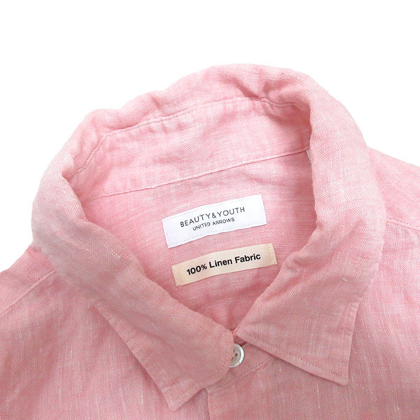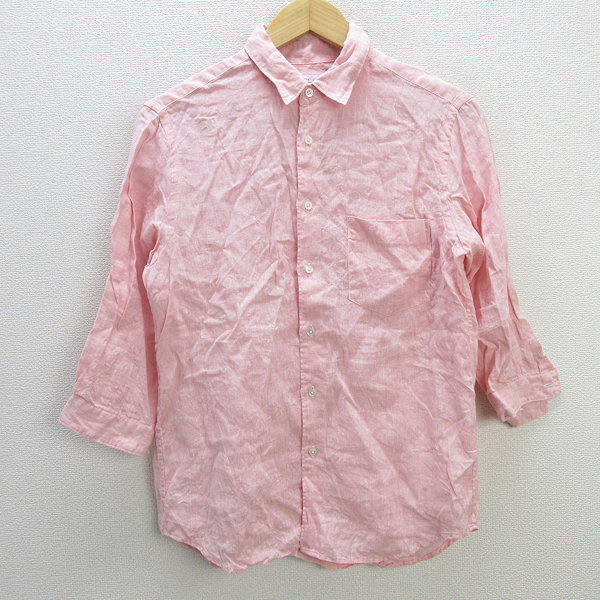 s■ユナイテッドアローズ/ARROWS B&Y 胸ポケット付き 七分袖リネンシャツ【S】ピンク系/MENS/59【中古】