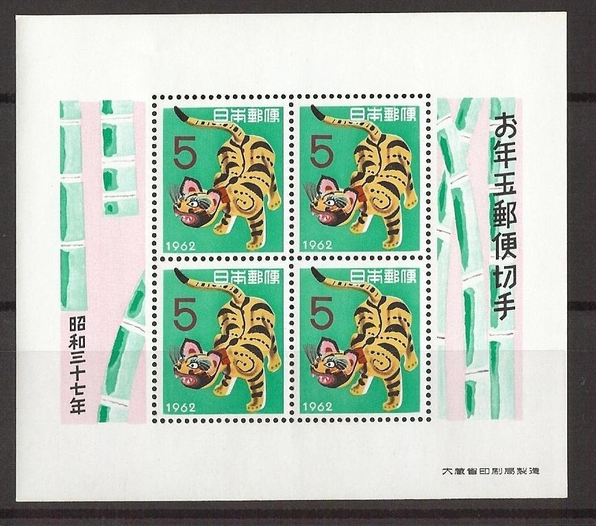 S37 年賀切手 お年玉小型シート 昭和37年用 張子とら