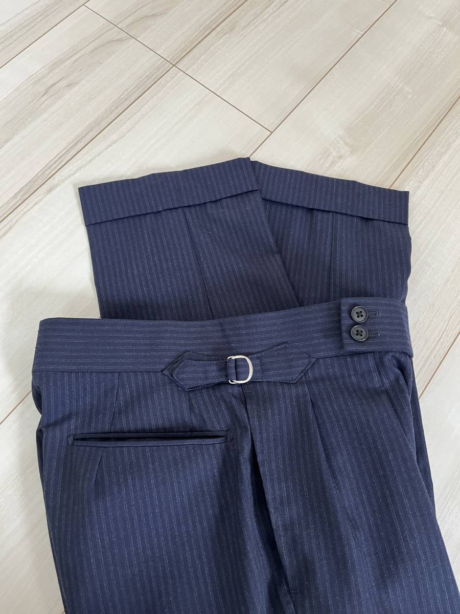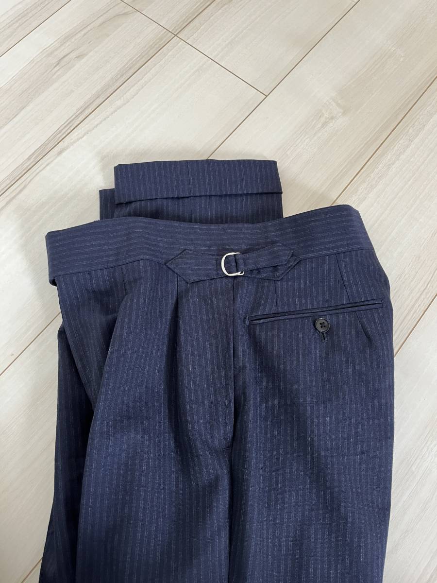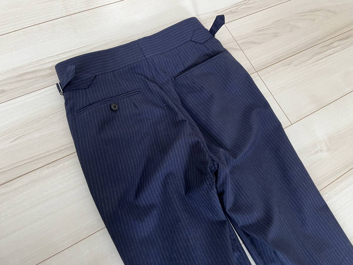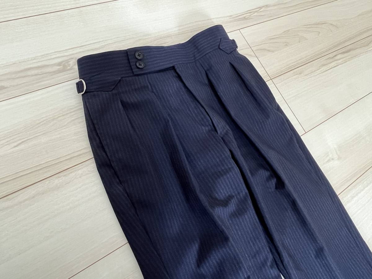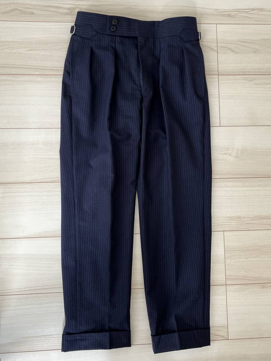 ZERBINO オーダー スラックス ヴィンテージ生地 ネイビー サイド尾錠 2タック ダブル パンツ サイズS トラウザーズ ウール ビジネス