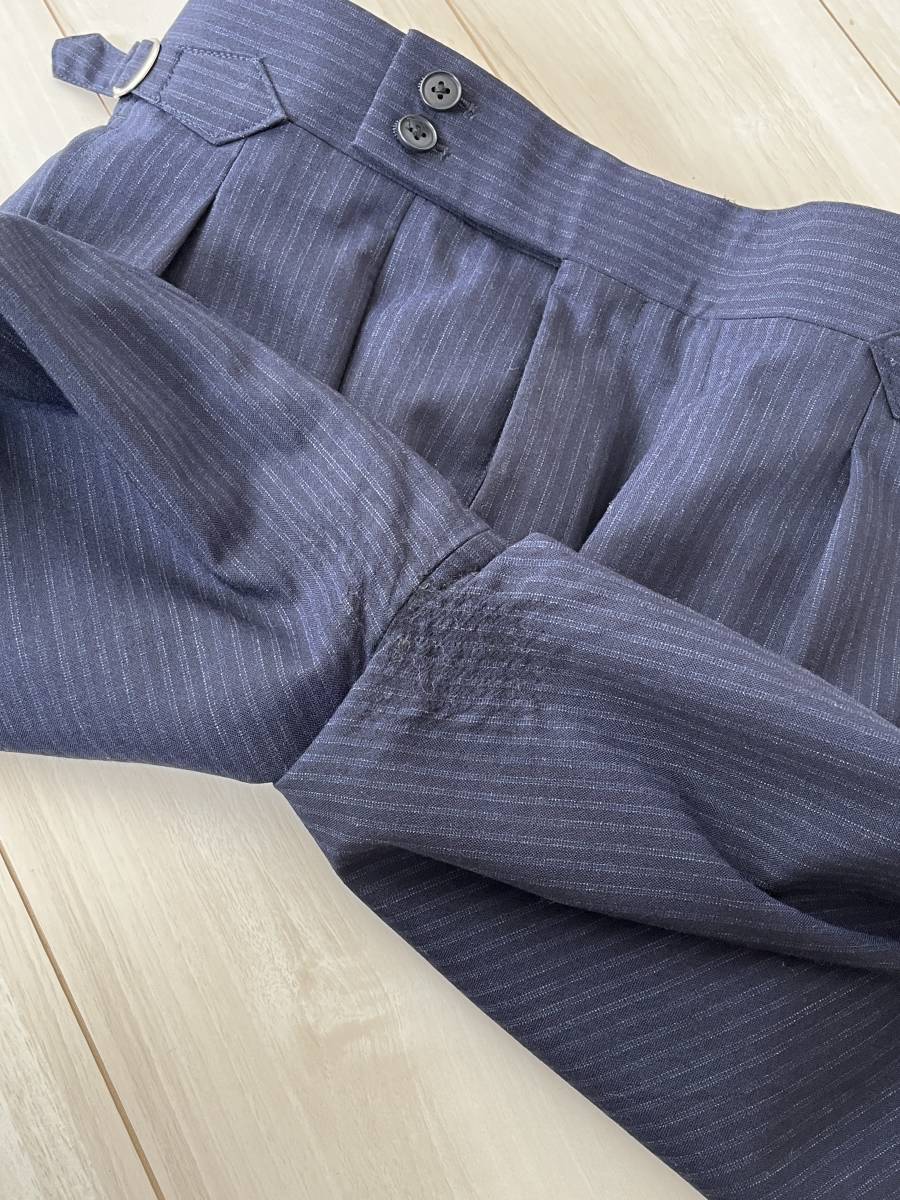 2タック、サイド尾錠、裾はダブルの仕様です。