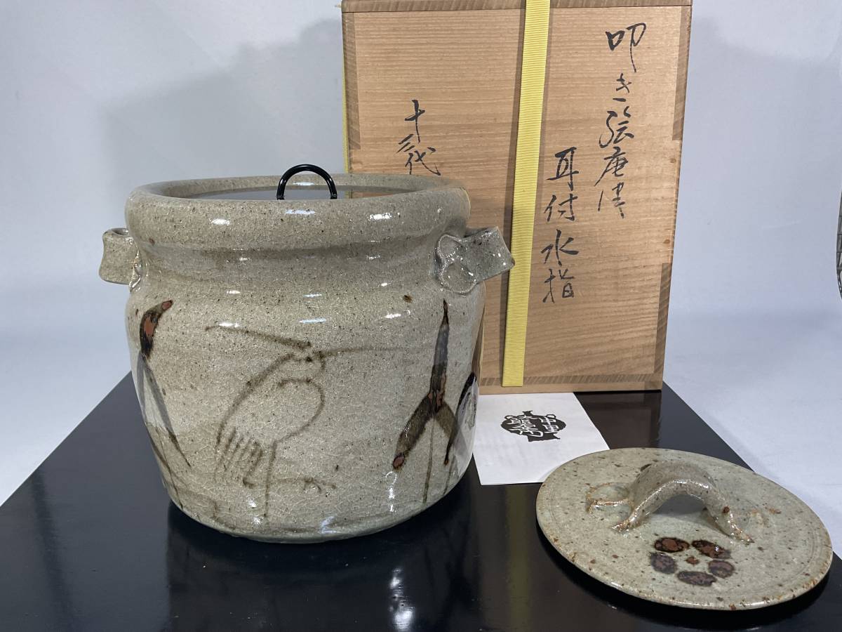 | 唐津焼 中里太郎衛門 叩き絵唐津水指 茶道具 | ||