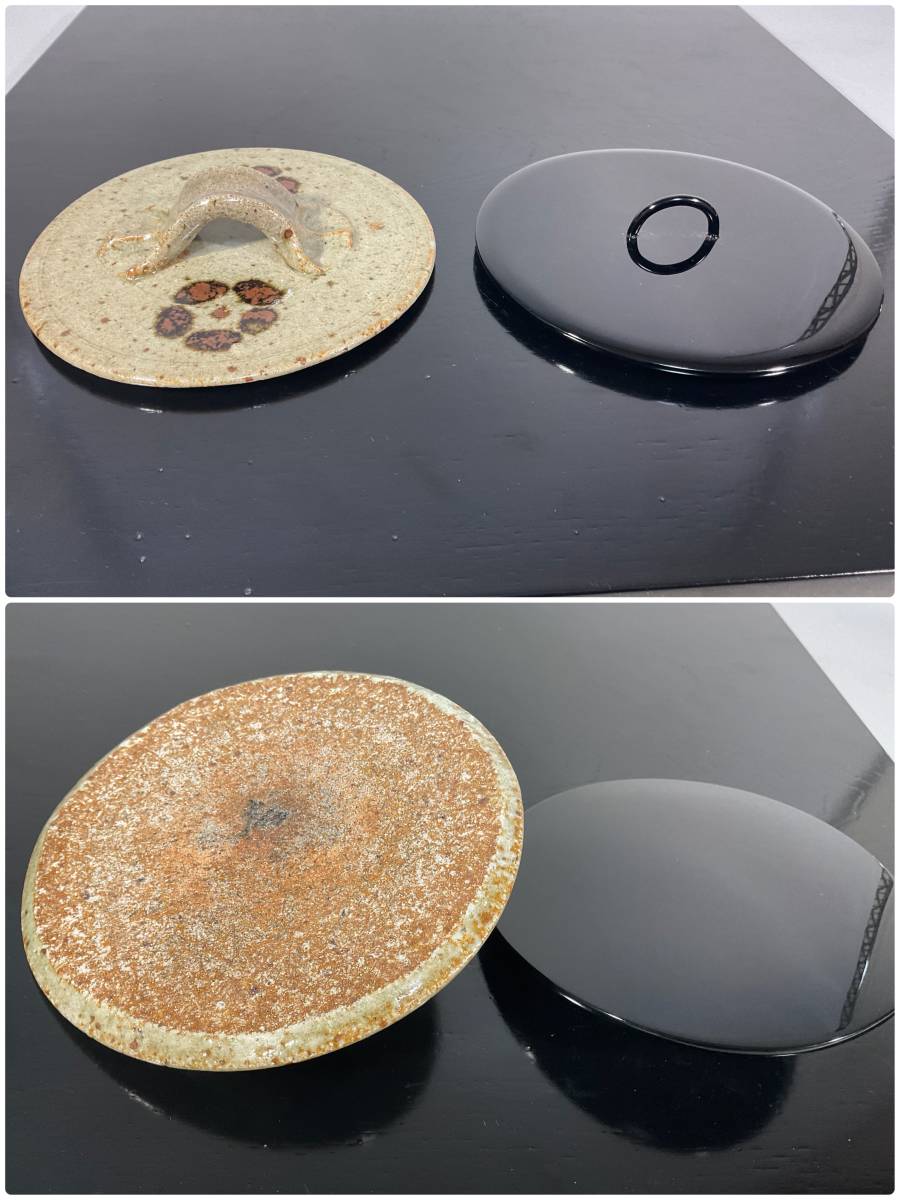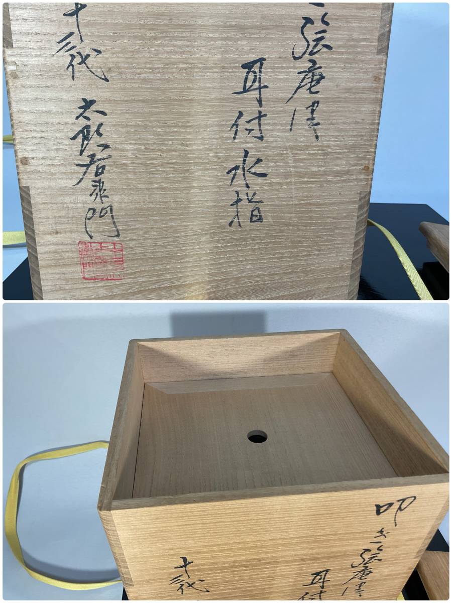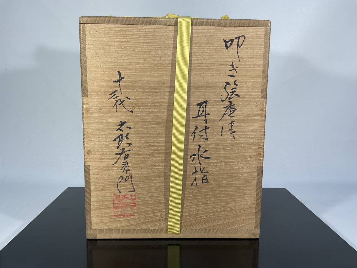 | 商品説明 | ごらんのような13代太郎衛門先生のお水指です。 使用感なくきれいな状態です。 もちろん傷はありません。 よろしくお願いいたします。 size 約 胴径 19cm 高さ 16.5cm 胴径に耳は含まず | |