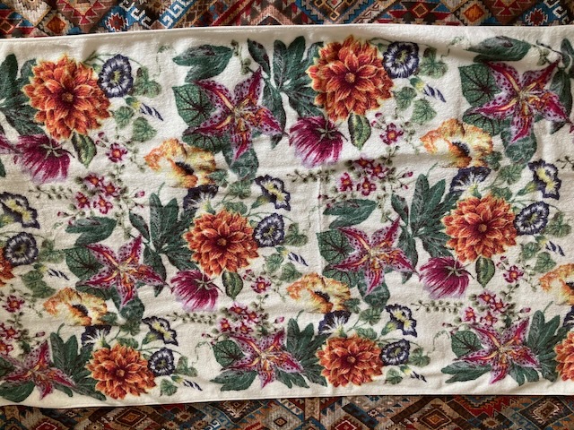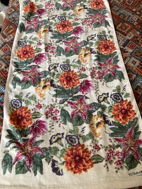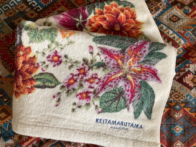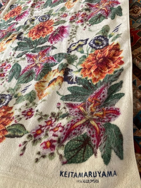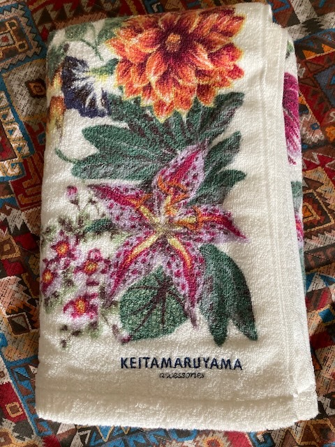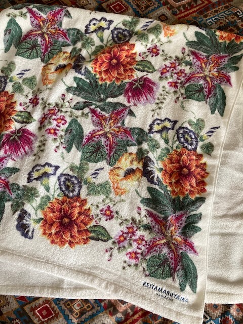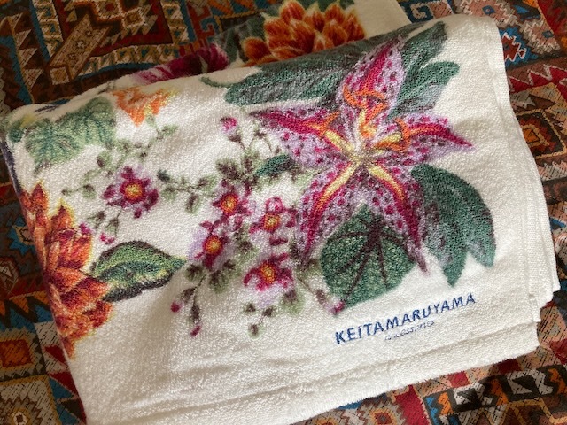 ケイタマルヤマ バスタオル 白ボタニカル柄