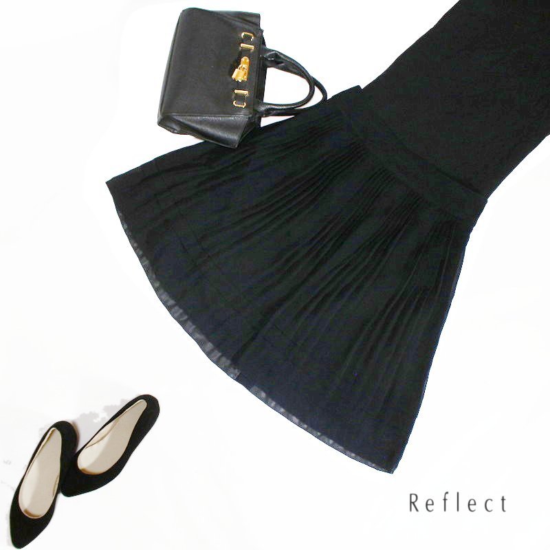 美品 リフレクト Reflect 株) ワールド ■ 春 夏 綺麗め Aライン プリーツ フレア シフォンスカート 11号 ブラック 黒 フォーマル 綺麗め