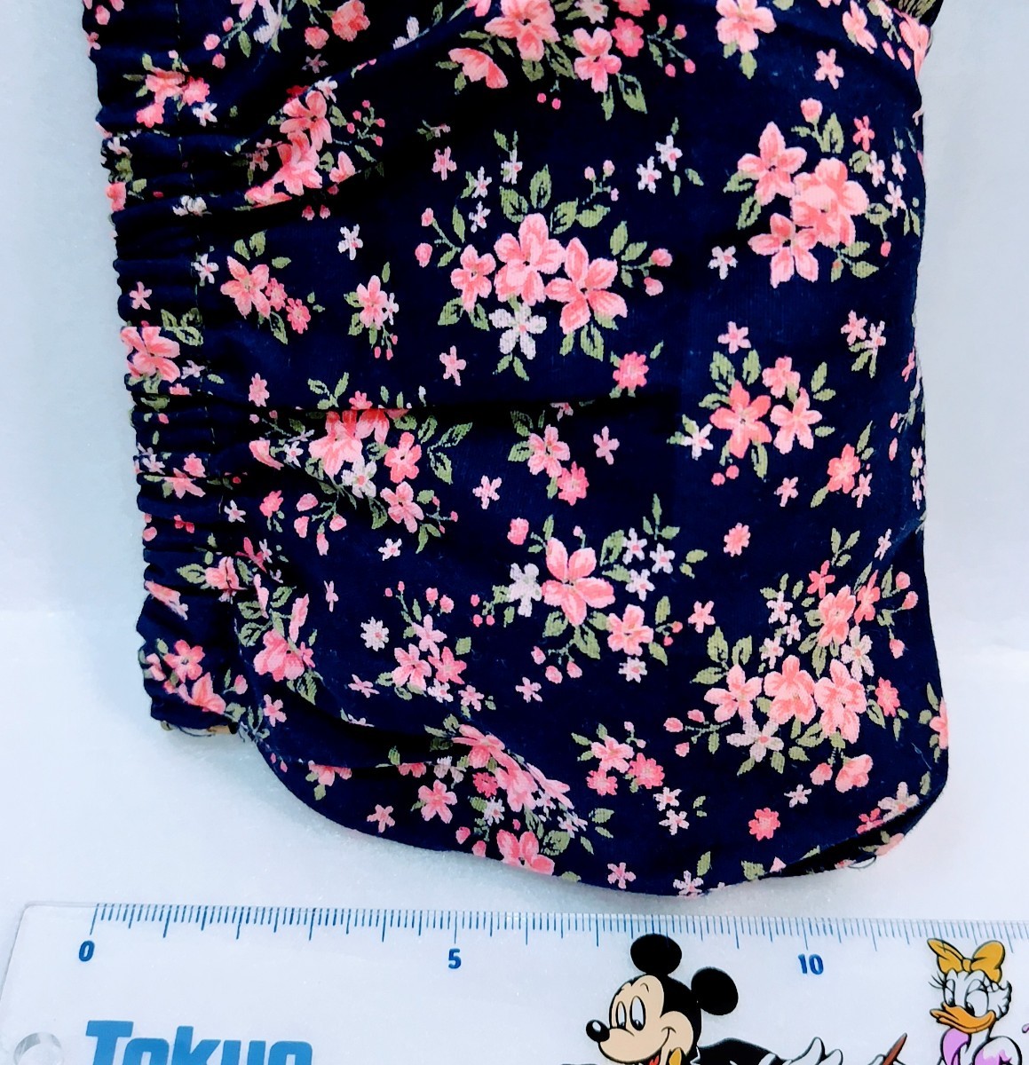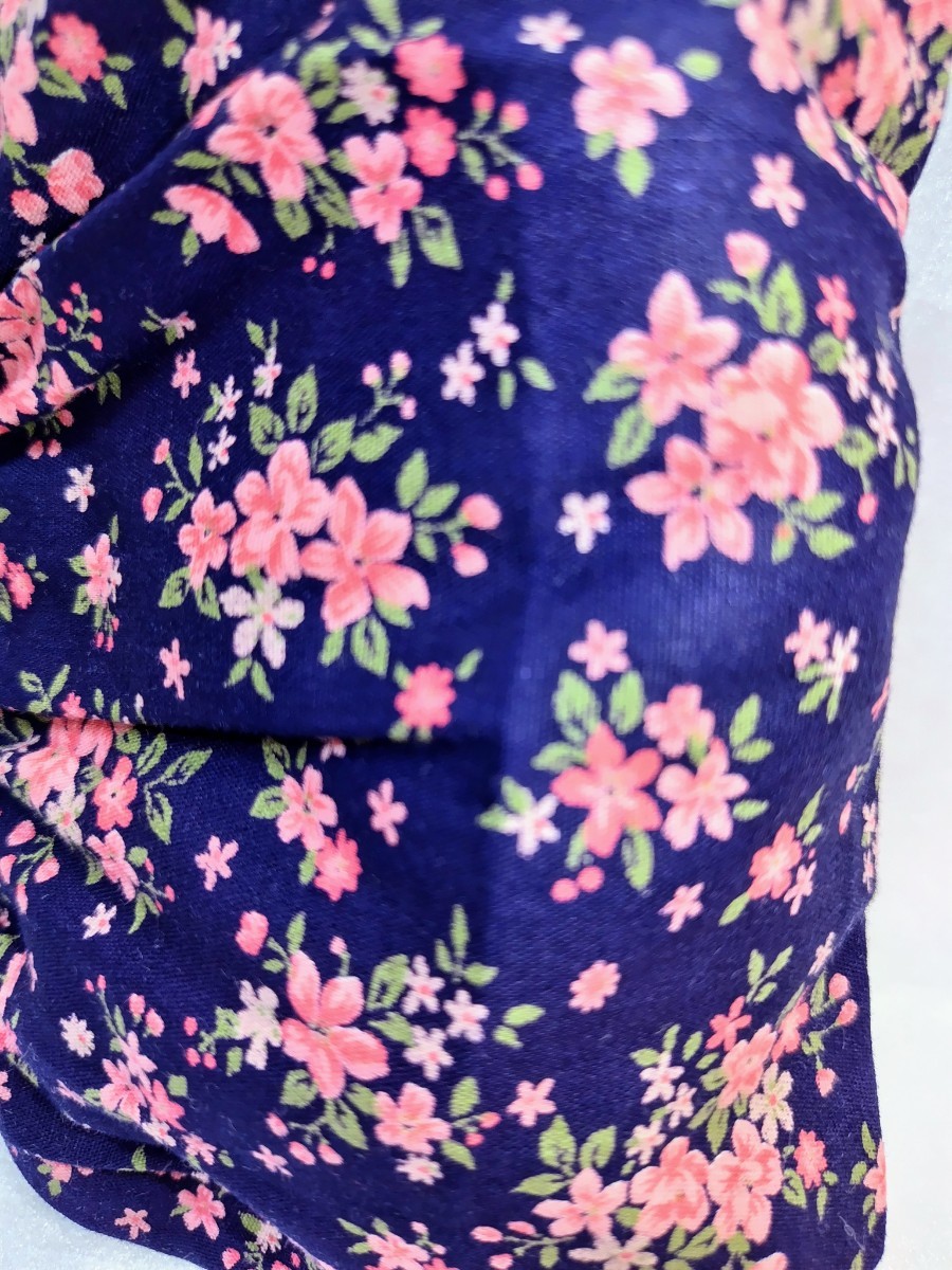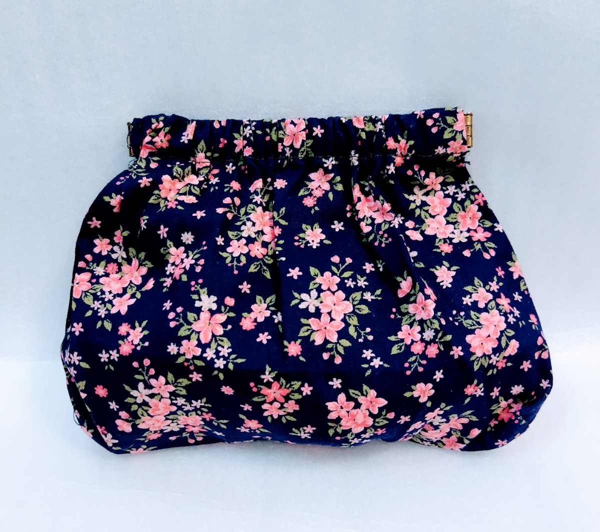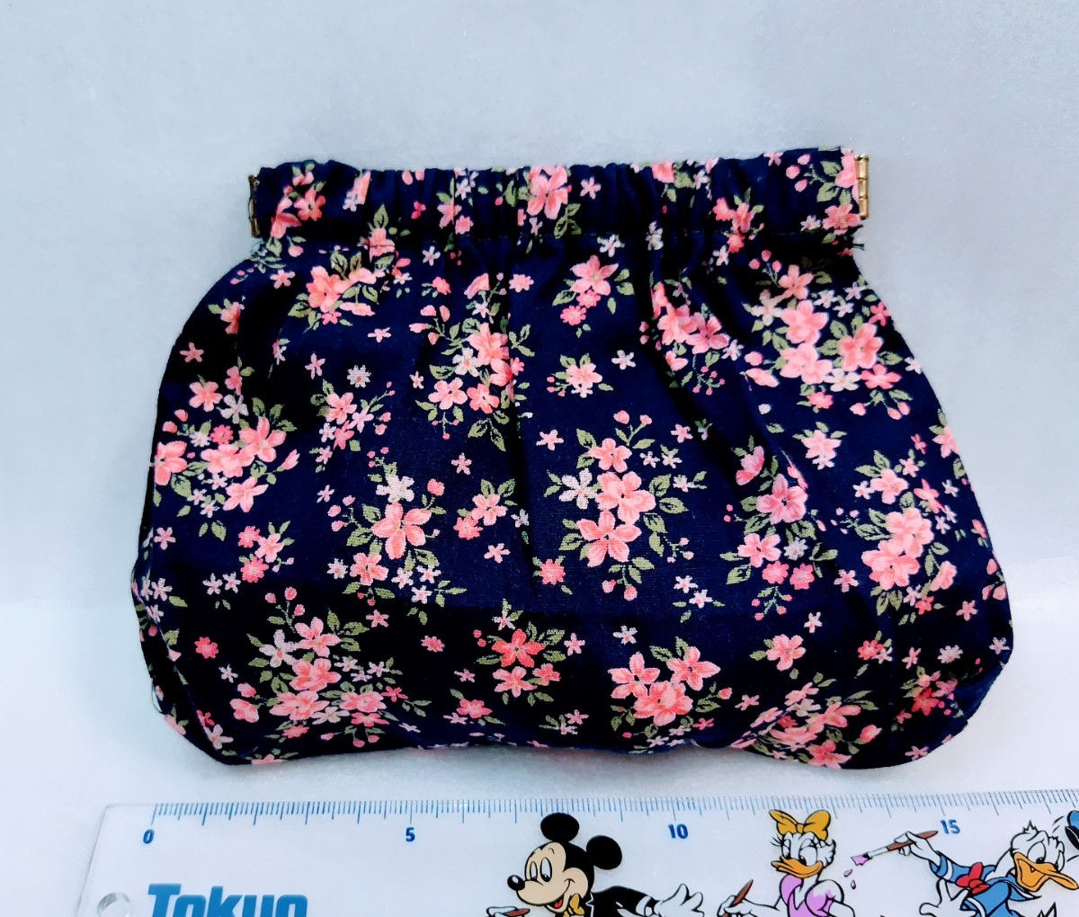 ハンドメイド バネ口ポーチ 花柄ネイビー
